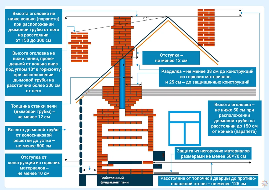 Неправильно сложенная печь может стать причиной пожара в доме, поэтому за ее состоянием необходимо следить постоянно. Не стоит поручать кладку печи лицам, не знакомым с правилами пожарной безопасности при устройстве печного отопления.