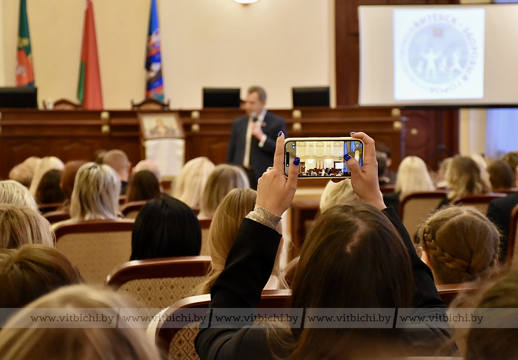 Заместитель председателя горисполкома, депутат Витебского городского Совета депутатов Виктор Глушин отметил, что форум проводится с целью реализации одного из основных направлений идеологической работы, определенной Директивой Президента Республики Беларусь от 9 апреля 2025 года № 12 «О реализации основ идеологии белорусского государства», – воспитательной деятельности, а также Программы социально-экономического развития Беларуси на 2026 – 2030 годы в части демографической безопасности, развития человеческого потенциала.