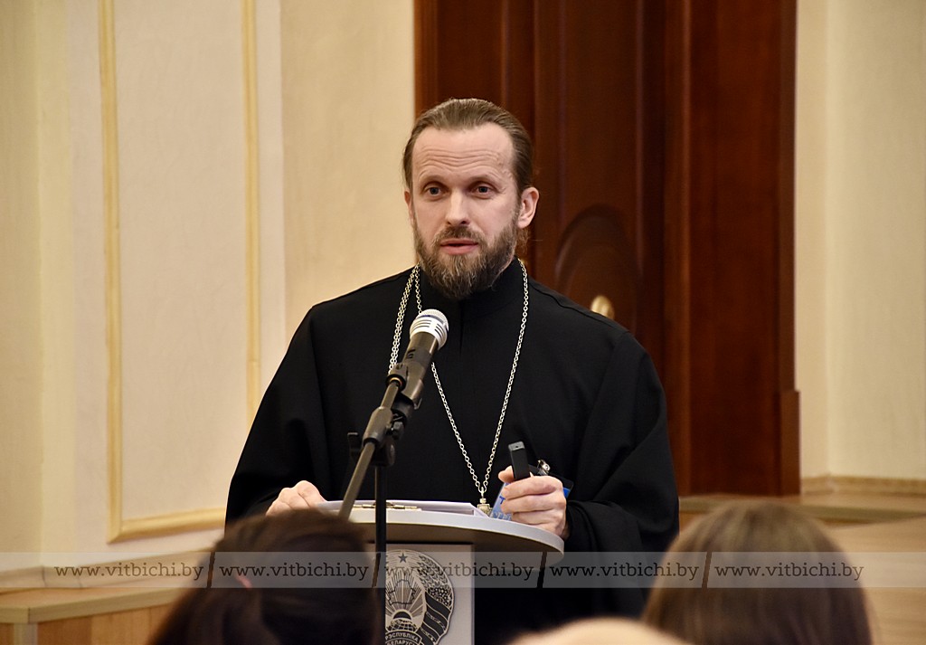 О духовных аспектах трезвенного просвещения говорил отец Виталий Винокуров. Деятельность Белорусской православной церкви призвана, в частности, способствовать единству общества через систему духовно-нравственного воспитания. Семья, народ, государство едины. При этом трезвость – нравственная категория, базовая ценность белорусов.