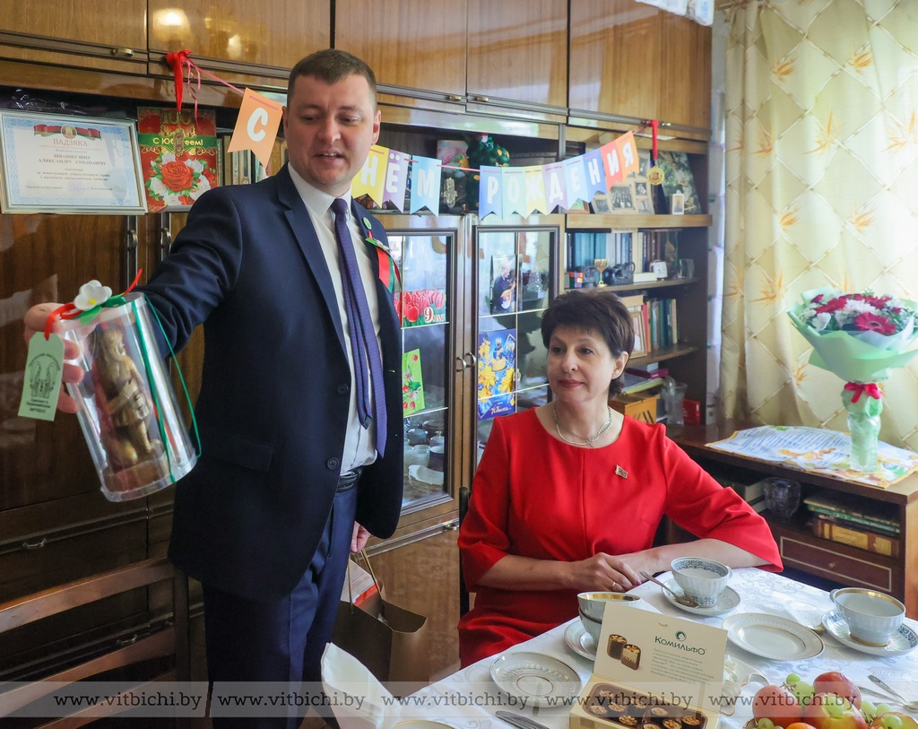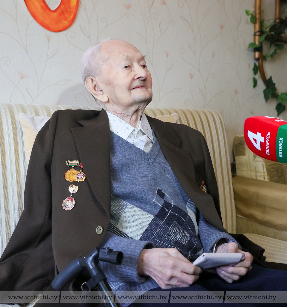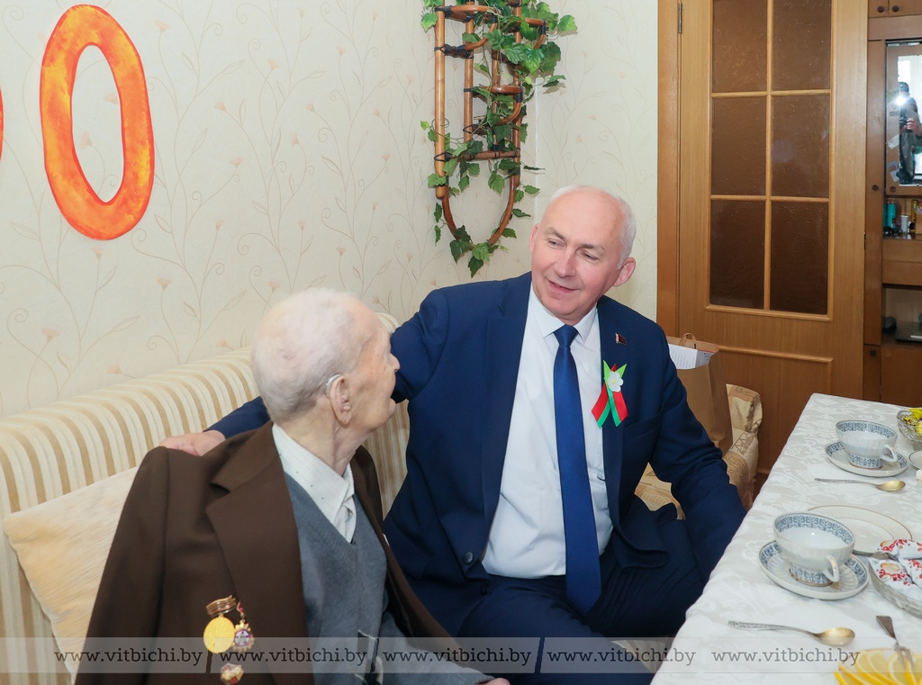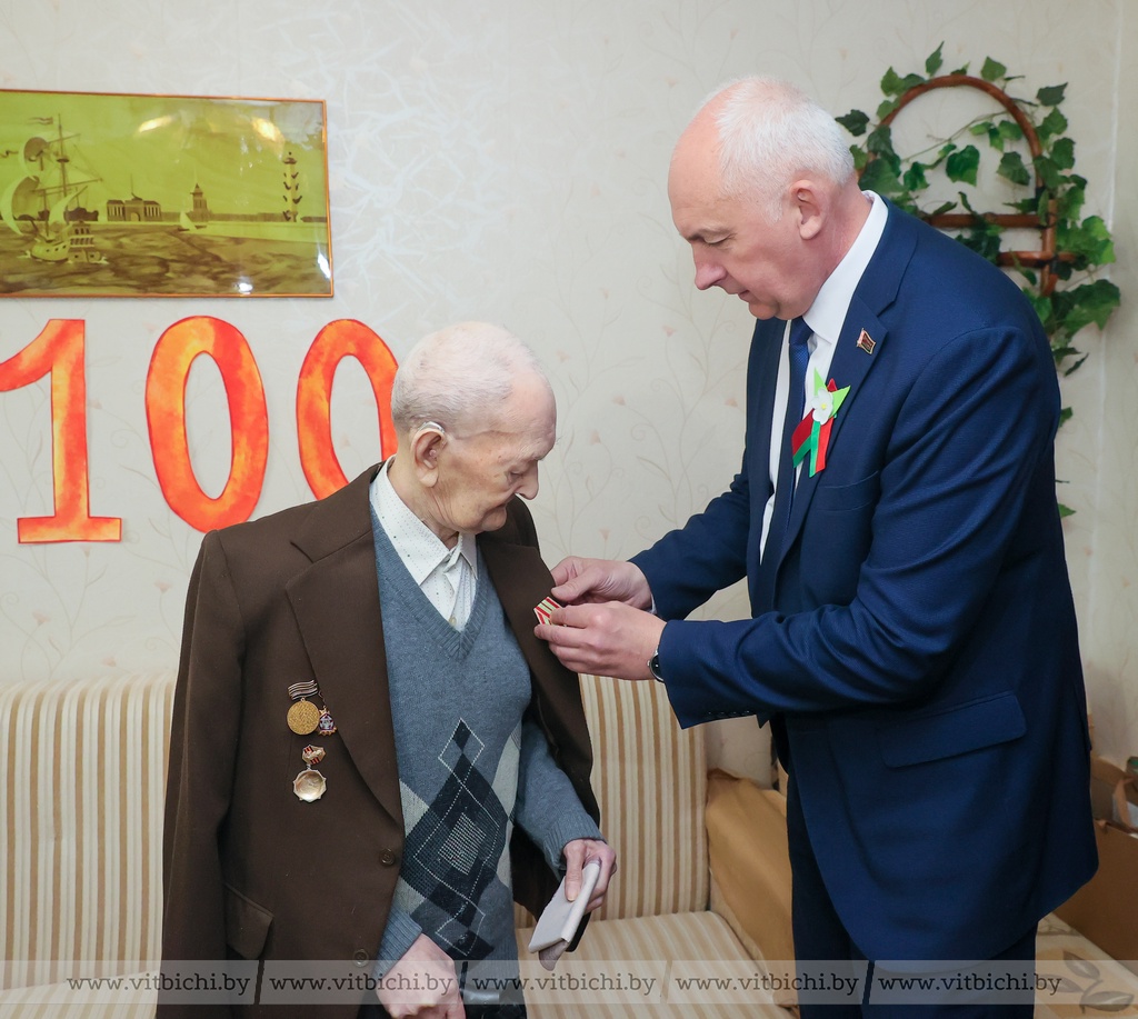 Глава города поздравил Александра Симоновича с главным для белорусского народа праздником, поблагодарил его за неоценимый вклад в Великую Победу и вручил юбилейную медаль «80 лет освобождения Беларуси от немецко-фашистских захватчиков».