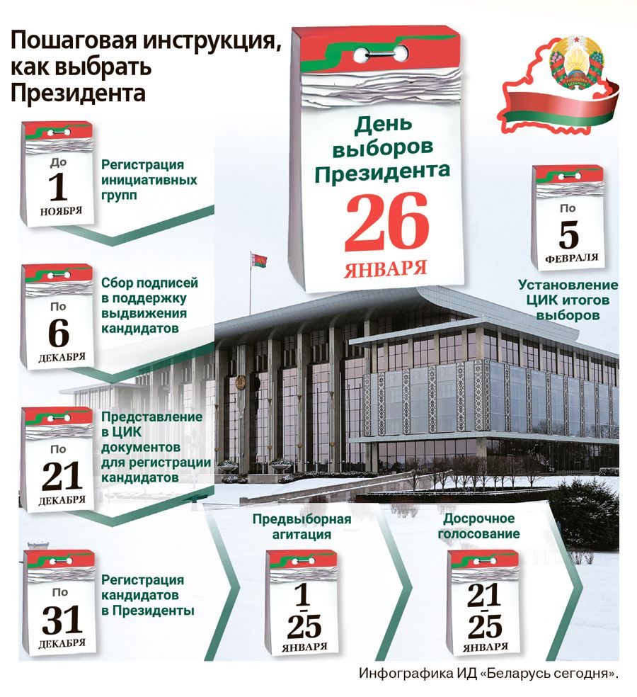 Еще четыре выдвиженца подали документы перед самым флажком, так что решения по ним будут приняты 4 ноября на заседании ЦИК Беларуси. Непосредственно к сбору подписей инициативные группы претендентов приступят с 7 ноября. Этот этап избирательной кампании продлится по 6 декабря. За месяц необходимо собрать не менее 100 тысяч подписей.