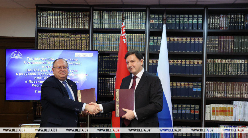 Президентская библиотека Беларуси и Президентская библиотека имени Б.Н.Ельцина подписали соглашение о сотрудничестве, передает корреспондент БЕЛТА.