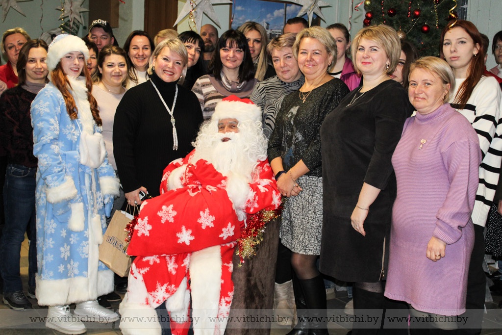 Следующий пункт на карте белобородого волшебника — открытое акционерное общество «Объединение «Лотос». Этот визит стал настоящим событием для всех работников, ведь в суете предновогодних дел не так часто удается встретить сказочных персонажей прямо на рабочем месте. Дед Мороз и Снегурочка приехали на предприятие, чтобы поблагодарить работников бытового обслуживания населения за их труд и подарить им немного новогоднего волшебства.
