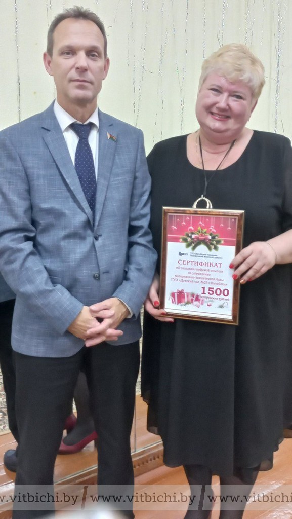 Подарок гостей – сертификат на 1500 рублей, конечно же, кстати – средства пойдут на развитие дошкольного учреждения.
