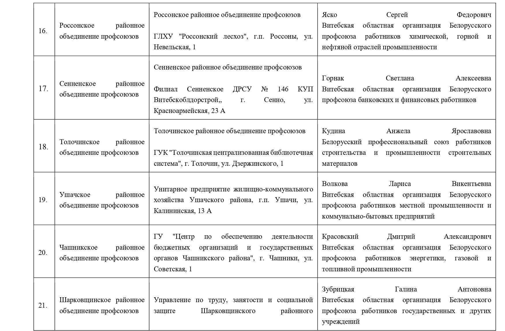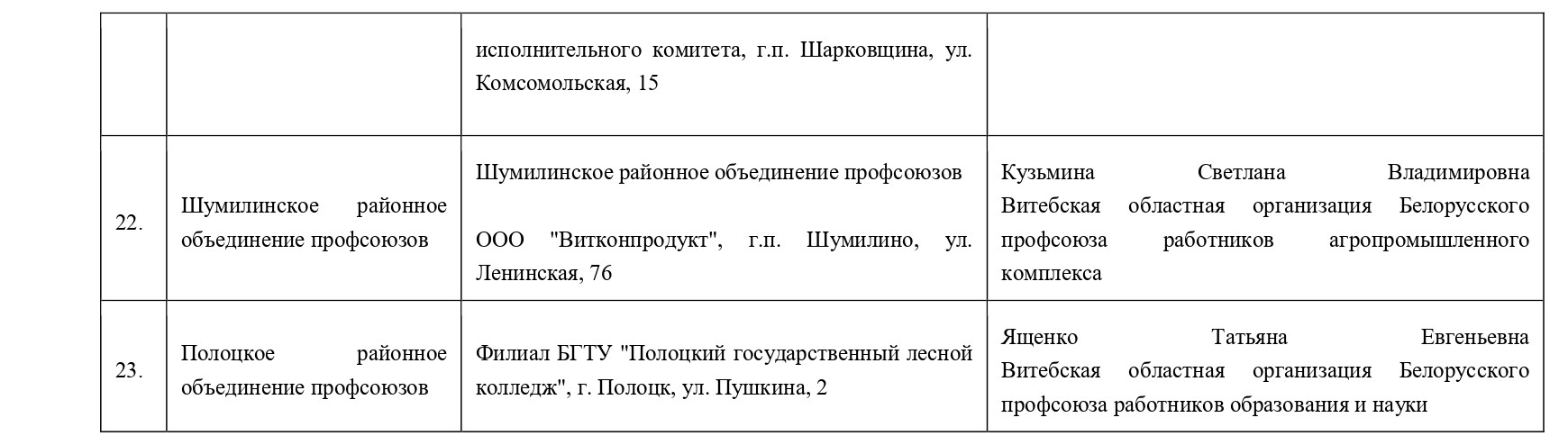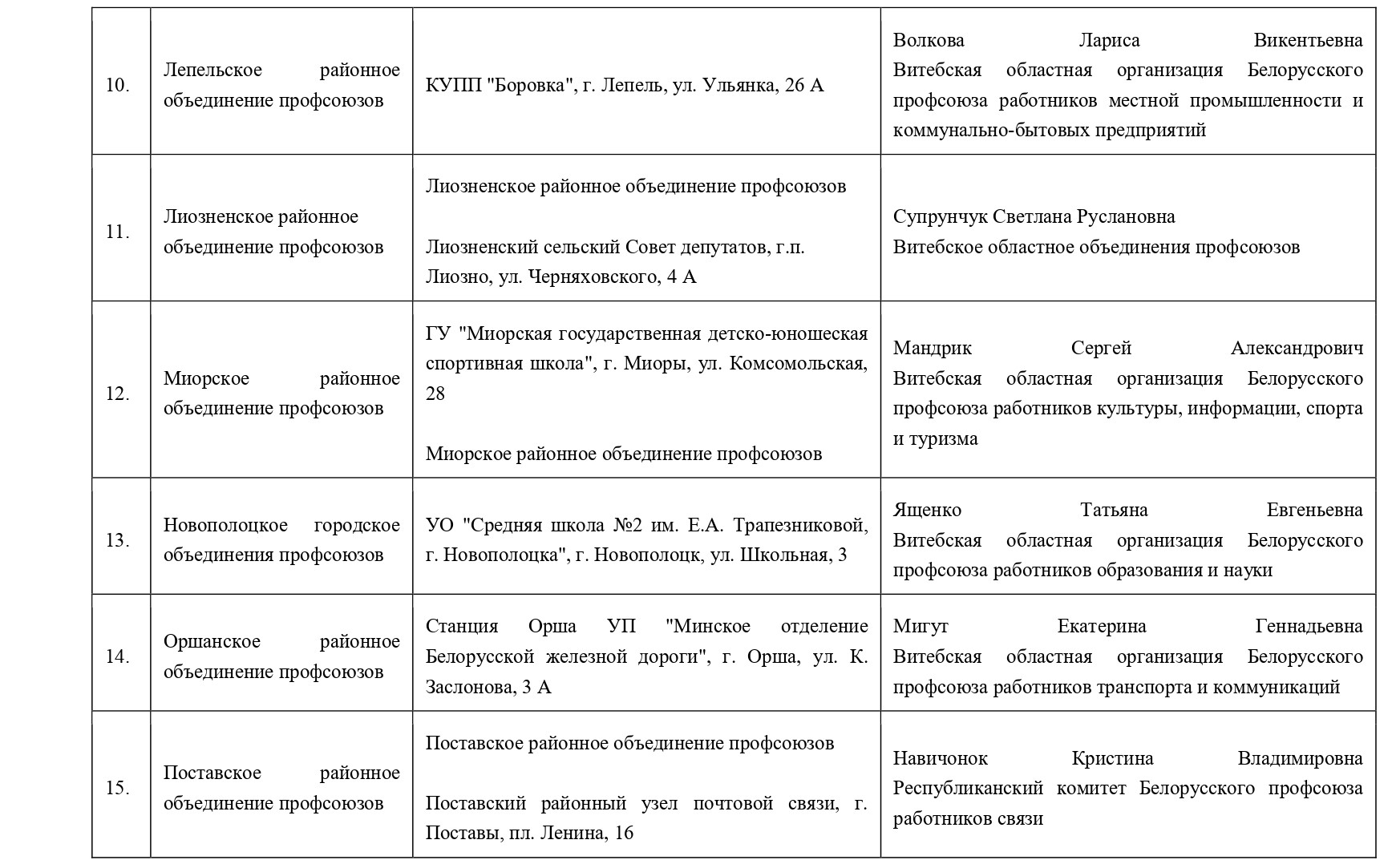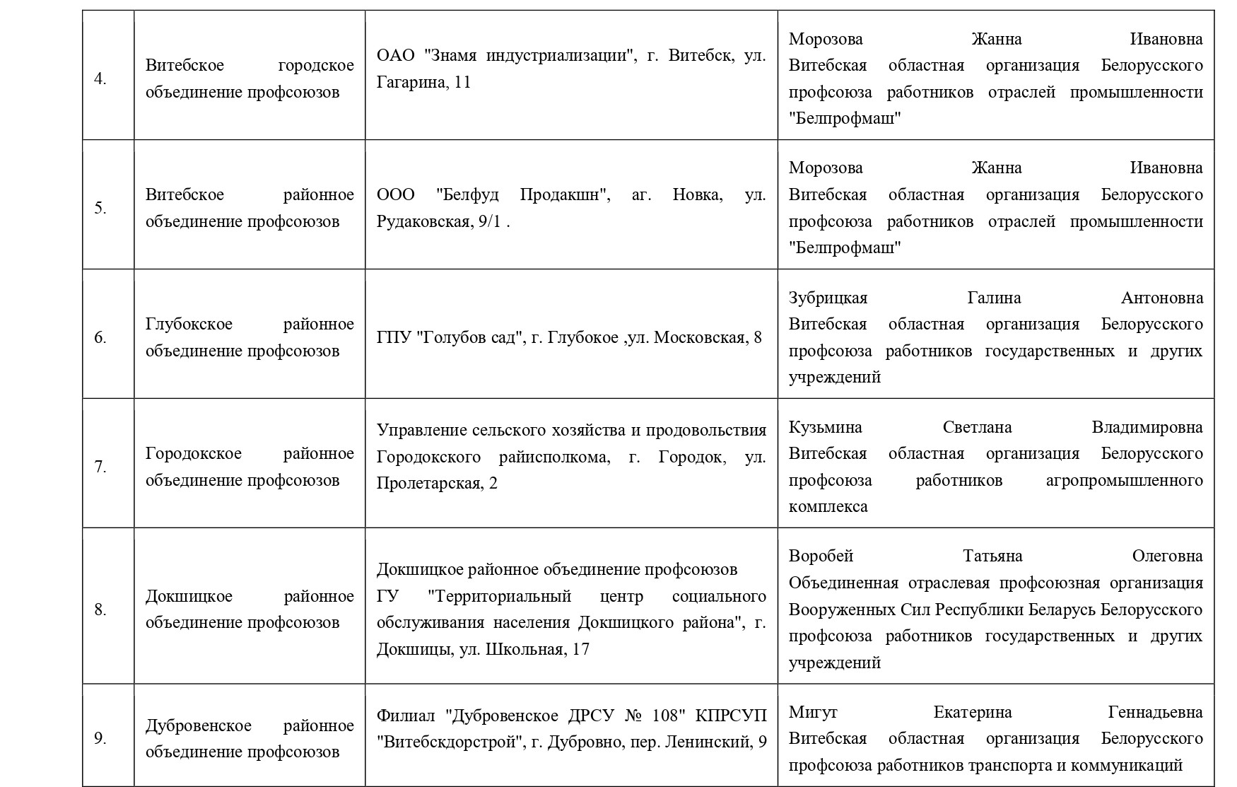 Витебское областное объединение профсоюзов Супрунчук Светлана Руслановна (80212) 26 18 89.