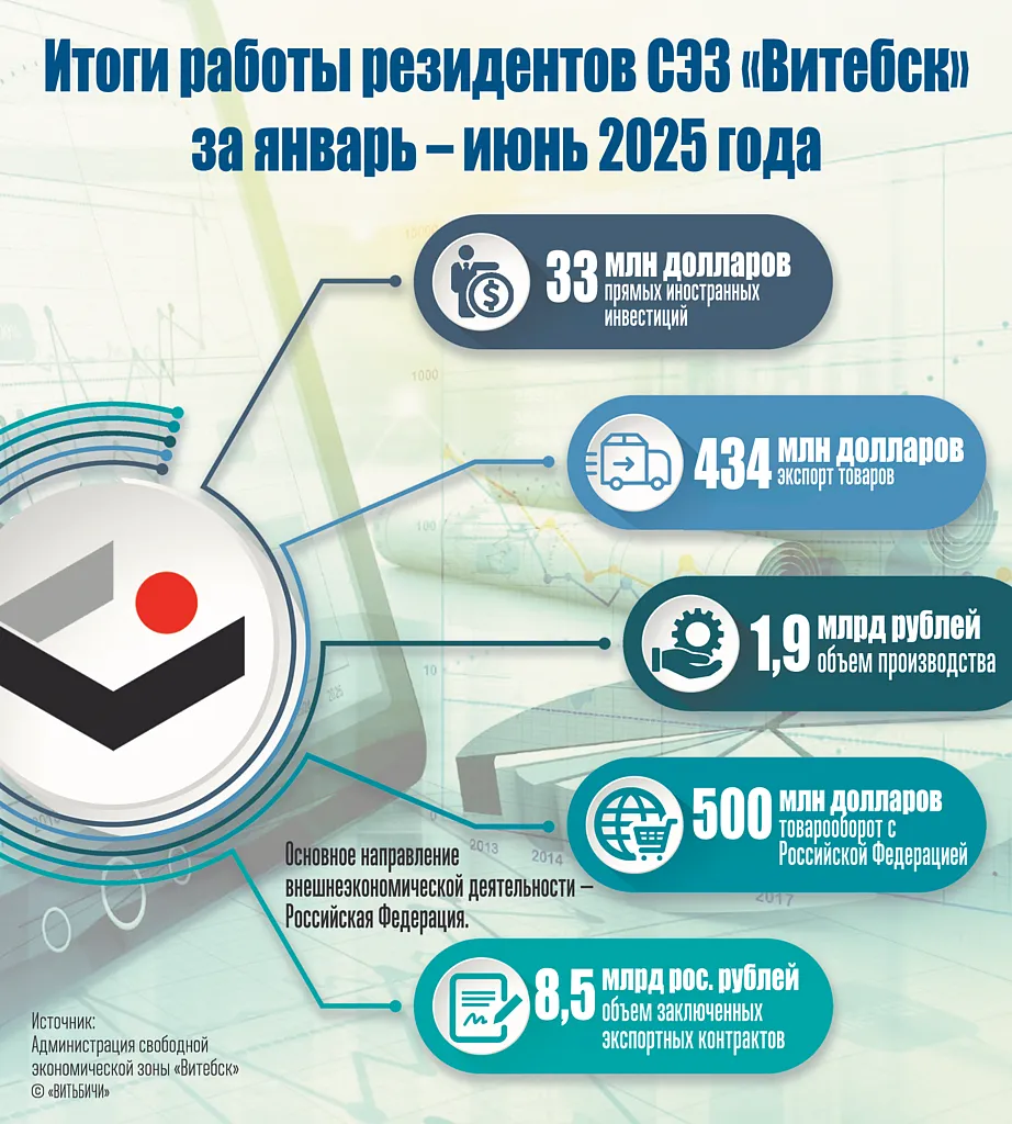Наработанные предложения создают основу для сохранения положительной динамики деятельности свободной экономической зоны на перспективу. Так, по итогам шести месяцев 2025 года предприятия-резиденты привлекли 33,3 миллиона долларов прямых иностранных инвестиций (темп роста 140,6 процента), из них на прямые инвестиции на чистой основе приходится 12,8 миллиона долларов, что на 45 процентов больше, чем за аналогичный период 2024-го.