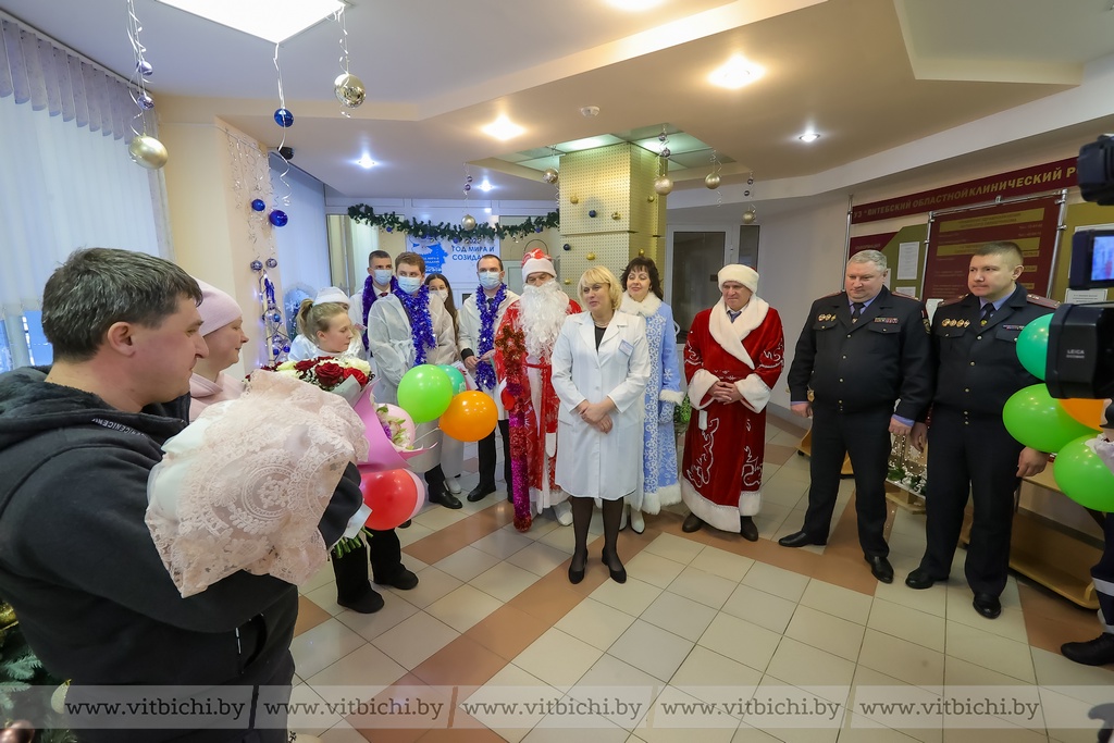 Также узнав об этой удивительной истории, отправились поздравить и другие небезразличные люди. Среди них были замечены заместитель председателя облисполкома Вячеслав Дурнов - в роли Деда Мороза, а Снегурочкой стала председатель Витебского областного отделения Белорусской партии «Белая Русь» Валентина Богатырева, начальник ГАИ области Михаил Дядичкин и многие другие. Все они пожелали семье Старовойтовых и особенно ее самой маленькой частичке здоровья, удачи и поменьше стрессовых ситуаций.