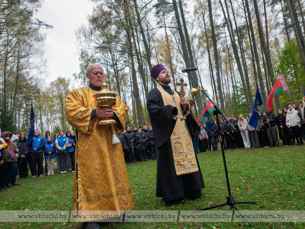 Память павших почтили минутой молчания. Благочинный Витебского района, иерей Дионисий совершил молебен.