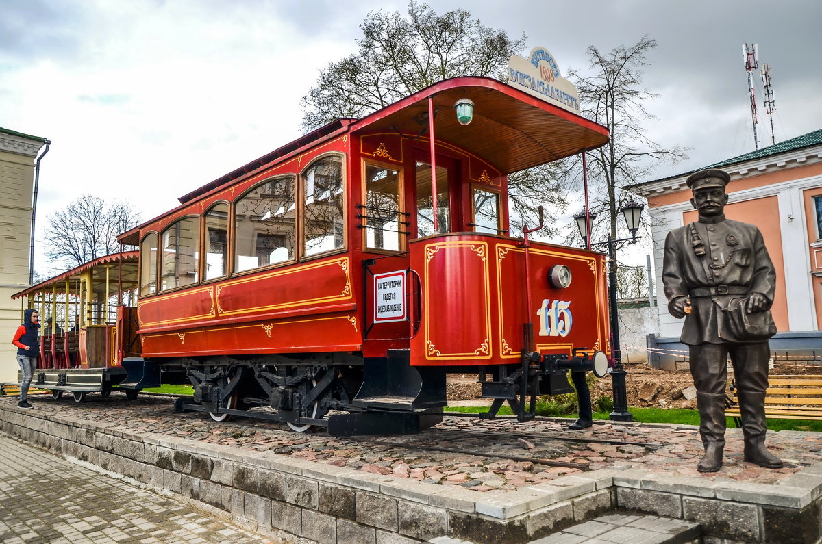 Мальчикам и девочкам наверняка будет интересно «прокатиться» в точной копии первого витебского трамвая, который запустили в 1898 году. Памятник ему установлен в 2013-м, и находится он на улице 5-й Фрунзе, 7. Надо сказать, что Витебск стал третьим после Киева и Нижнего Новгорода городом, где запустили электрический транспорт. Воссоздать копию вагона помогли архивные фото, найденные в Беларуси, России, Германии и Бельгии. Зарубежные производители специально изготовили реплики деталей XIX века. Вагон не случайно стоит не на рельсах, а на постаменте – сегодня трамвайные колеи шире. Кондуктор в таком необычном транспорте есть, но он не попросит у вас денег за проезд. Как говорится в известном кино: «Он же памятник!» Скульптура кондуктора была установлена в 2016 году.