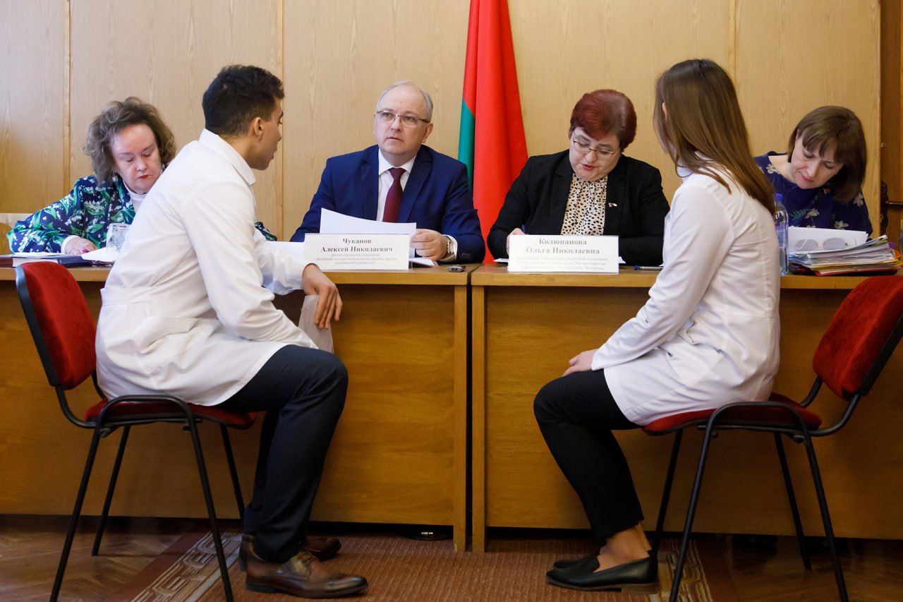 В работе комиссии по распределению принимают участие начальник управления кадровой политики, учреждений образования Министерства здравоохранения Республики Беларусь Ольга Колюпанова, ректор университета Алексей Чуканов, деканы факультетов университета, представители учреждений здравоохранения всех регионов страны.