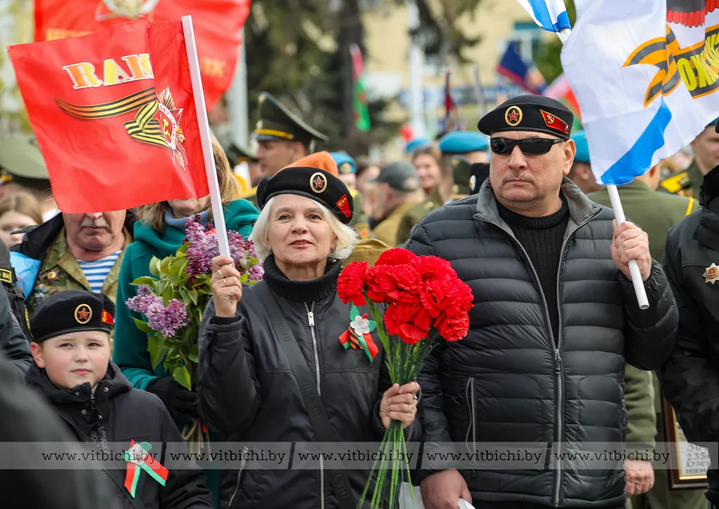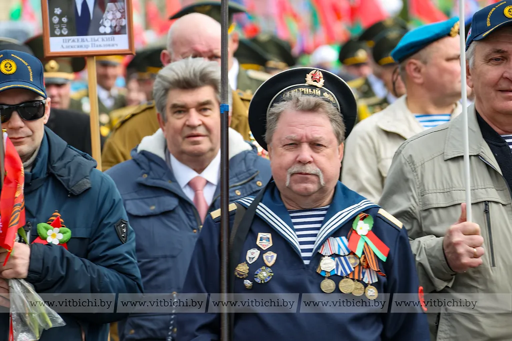 9 мая / «Витьбичи» / Сергей Кочетов /. Утро праздничного дня в областном центре началось с «Шествия поколений». Колонну возглавили руководители области и города. В этот строй встали витебчане разных поколений: ветераны труда и Вооруженных сил, воины-интернационалисты, представители силовых структур, учащиеся военно-патриотических классов, кадеты. Многие из них пронесли в руках портреты своих родственников-фронтовиков в рамках Всенародной акции «Беларусь помнит», которая собирает все больше и больше участников наряду с «Бессмертным полком».