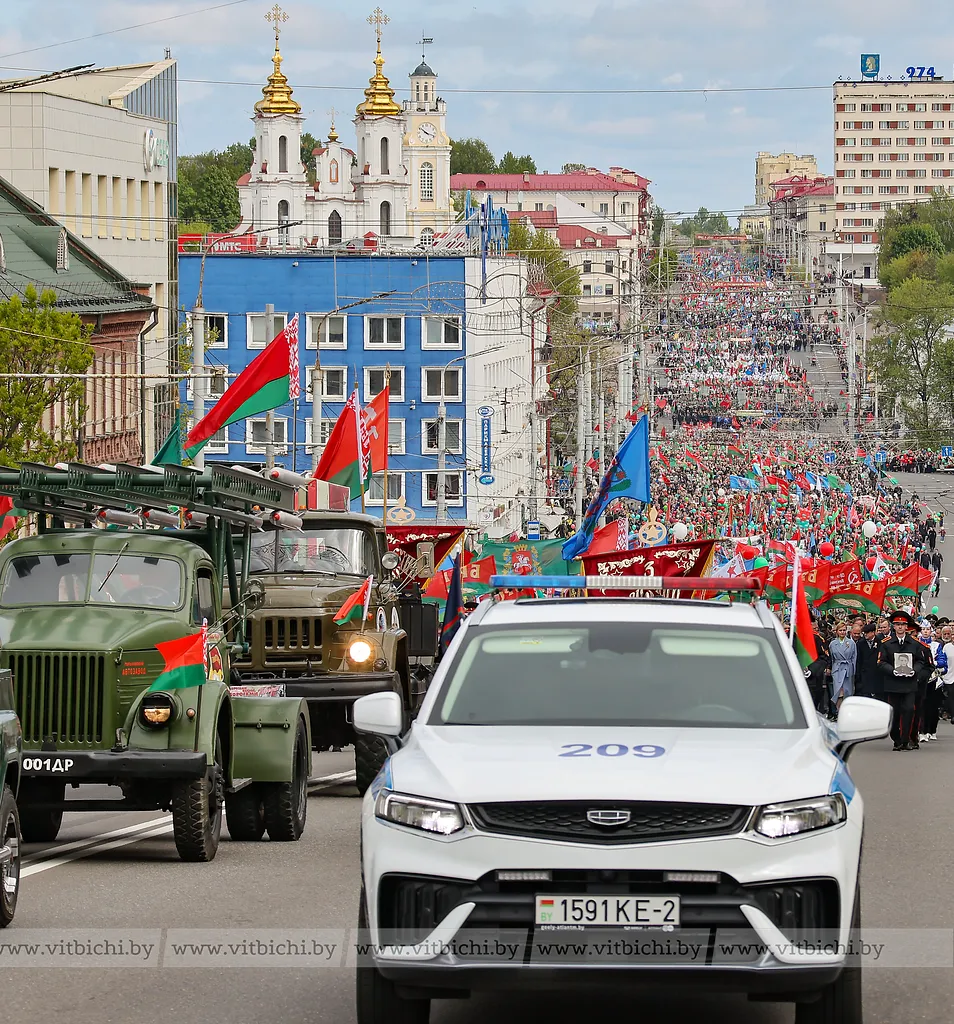 Одним из ярких событий 9 мая в Витебске стал парад войск Витебского гарнизона в честь 80-летия Победы советского народа в Великой Отечественной войне. В составе войск, участвующих в параде, – военнослужащие 103-й отдельной гвардейской мобильной бригады, а также сотрудники УВД, Следственного комитета, Департамента охраны, Государственного комитета судебных экспертиз, МЧС, воспитанники Витебского кадетского училища.