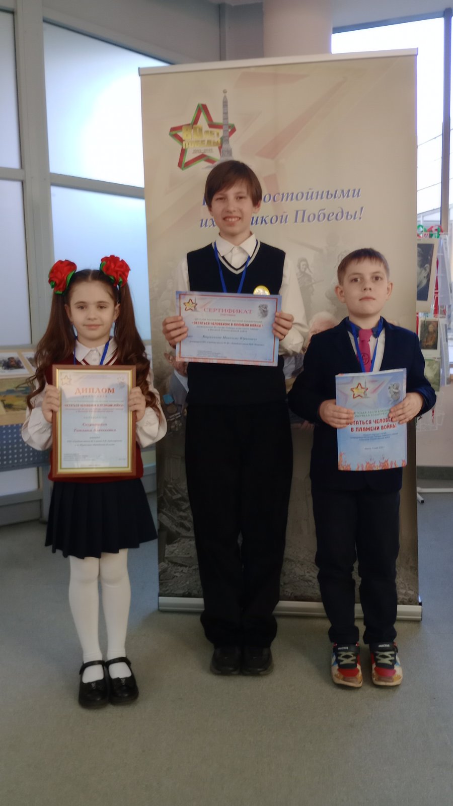 Юные исследователи Максим Вараксин (средняя школа №30 г. Витебска имени М.Е. Маценко), Владислав Сеньков (гимназия № 1 г. Витебска имени Ж.И.Алфёрова), Татьяна Скуратович (средняя школа № 2 г. имени А.И. Дубосарского, г. п. Шумилино), Алиса Яровая (средняя школа № 1 имени Героя Советского Союза П.А. Акуционка, г.п.Шумилино) представили научные работы, в которых отразили результаты анализа малоизученных архивных материалов, музейных коллекций, а также глубокого исследования художественных произведений о войне.