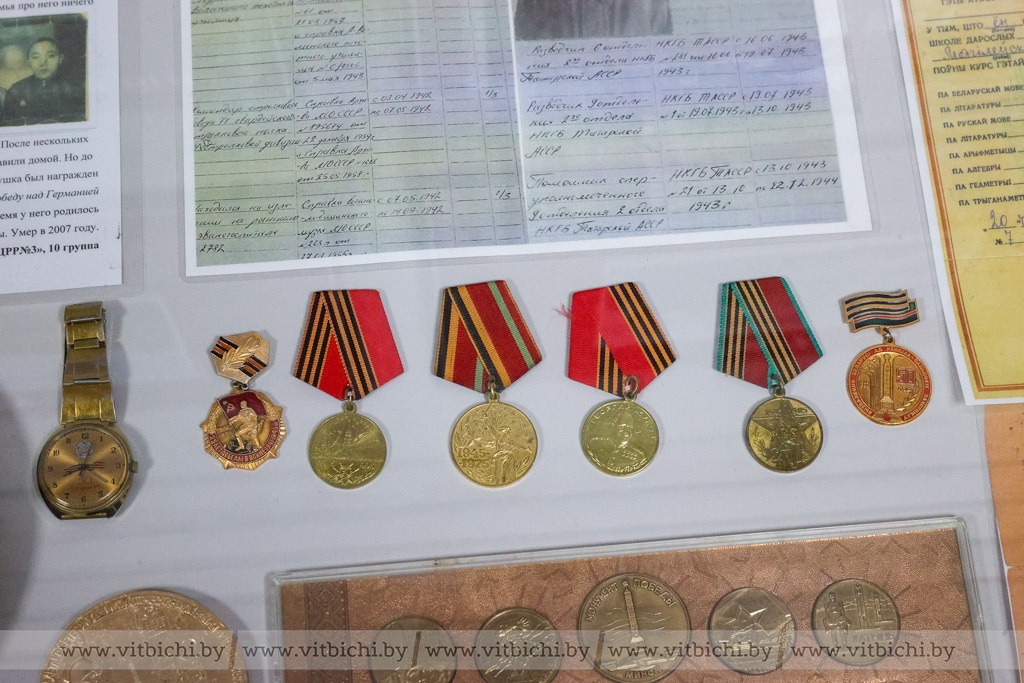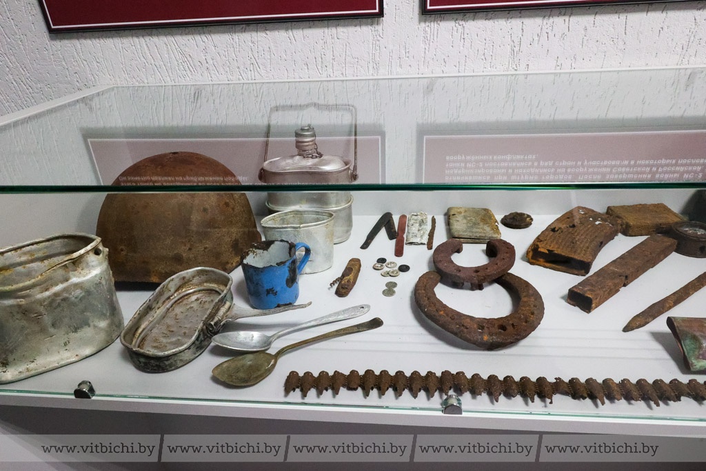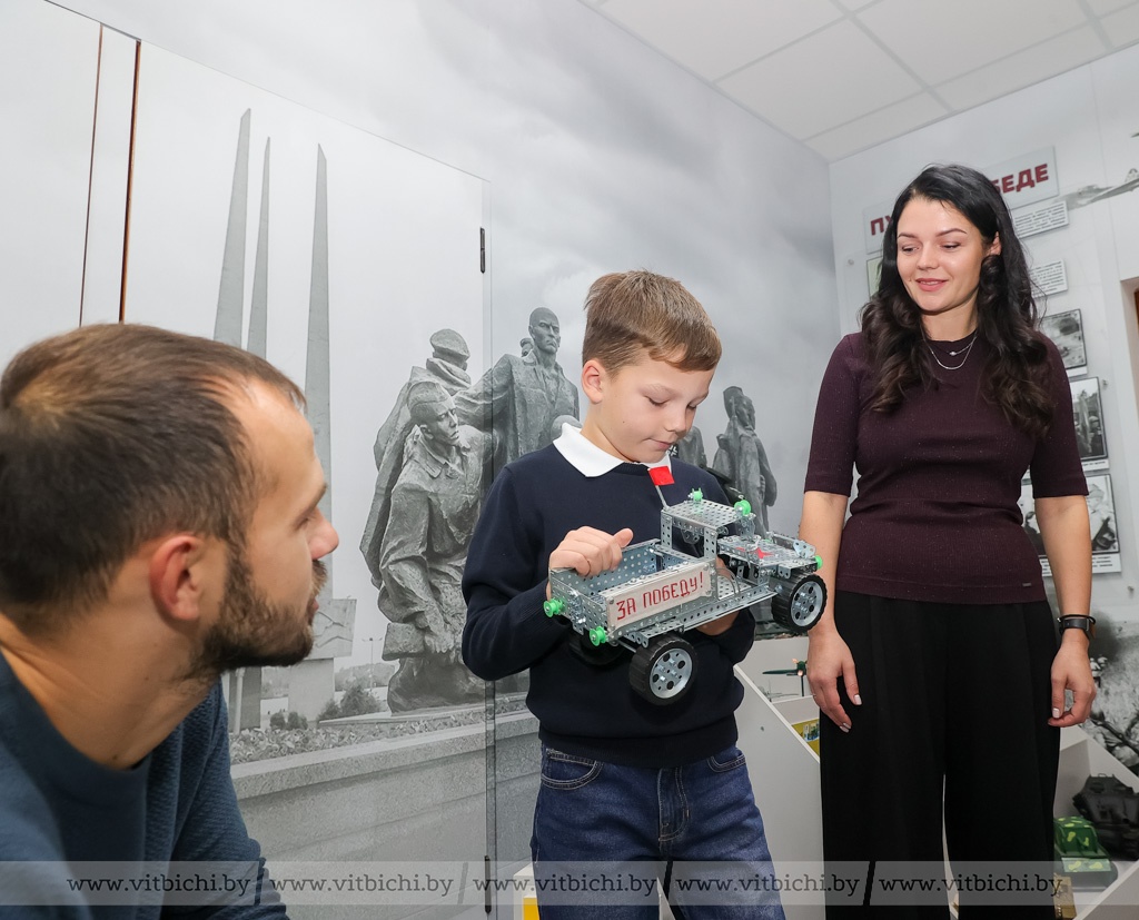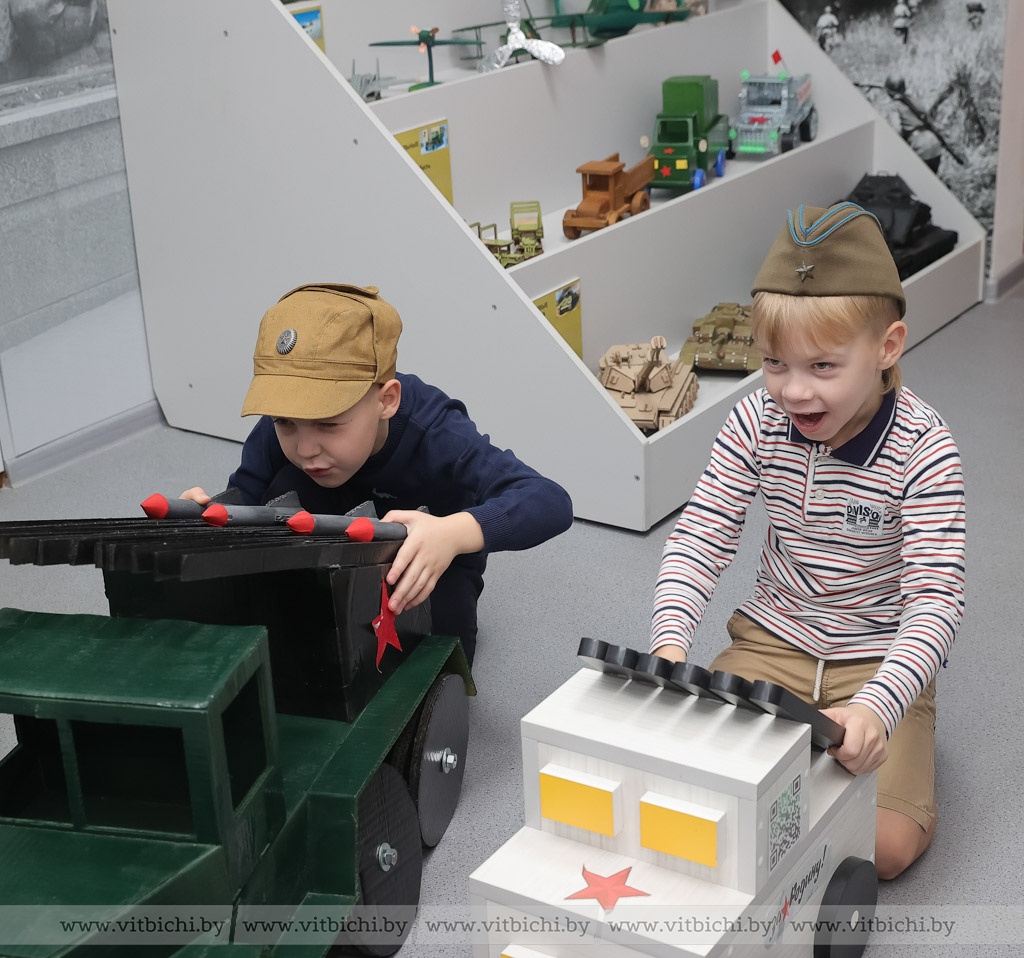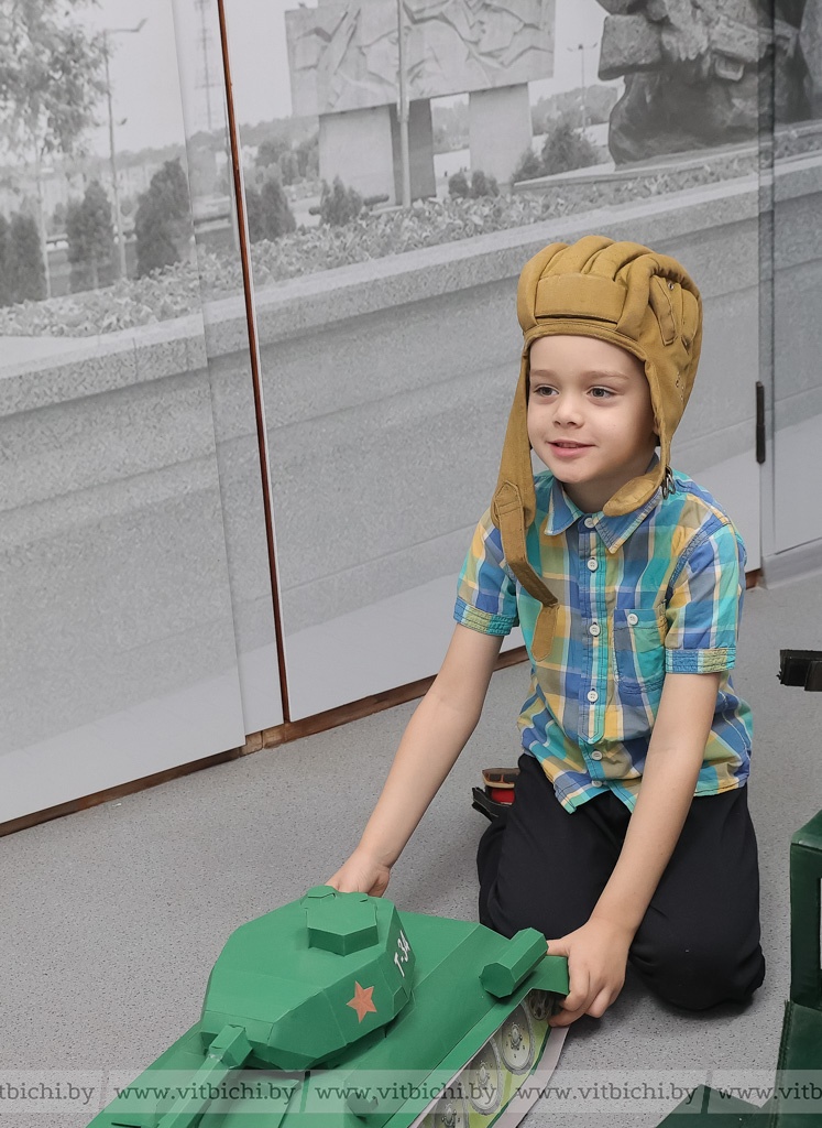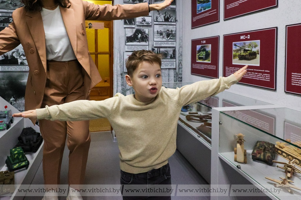 Чуть более полугода назад в дошкольном учреждении образования появилась музейная экспозиция «Боевая техника военных лет». В ней представлены макеты боевых машин, изготовленные воспитанниками детских садов Первомайского района вместе с родителями и педагогами, стенды с информацией о событиях, которые происходили в Витебске в годы Великой Отечественной войны, о партизанском движении в нашем регионе. Есть здесь и предметы, найденные поисковиками во время раскопок: каски, фляжки, ложки и многое другое.