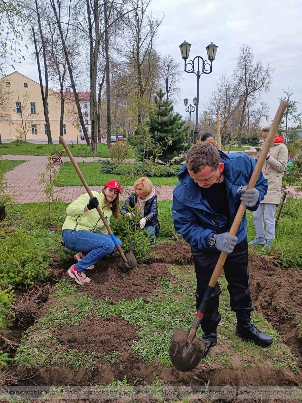 Специалисты Витебской городской и районной инспекций посадили в парке Победителей 50 елей и 25 туй.