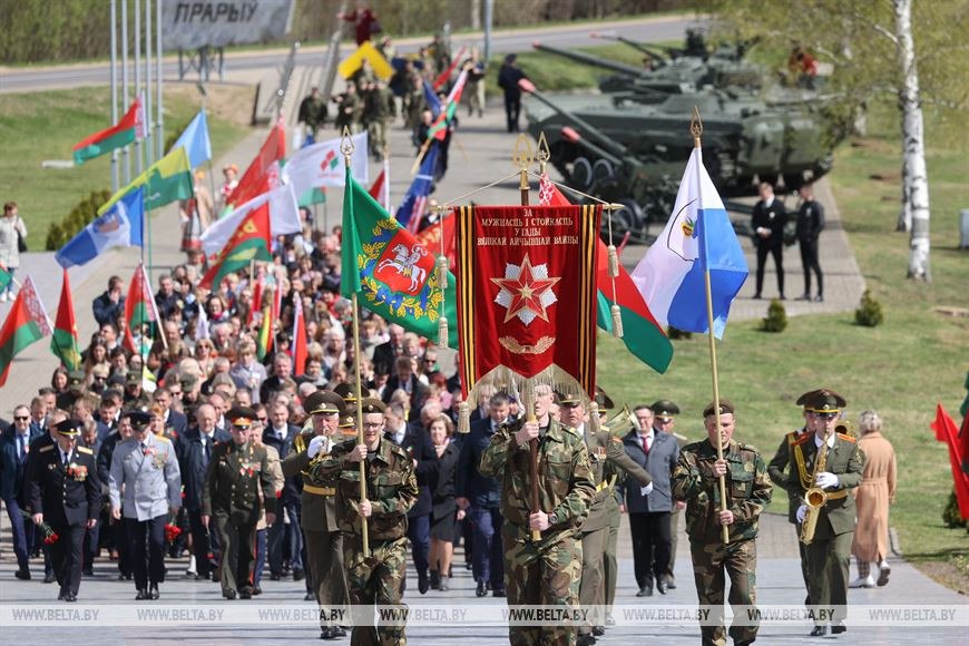 Отдать дань уважения и памяти подвигу советского народа, воинам, которые приближали Победу в Великой Отечественной войне, отстояли свободу и независимость нашей Родины ценой своей жизни, собрались около 2 тыс. человек. Здесь руководство области, делегации районов и городов северного региона, представители трудовых коллективов, общественных организаций, предприятий, молодежь и школьники. Эмоции в этот праздник - гордость, боль и радость за Победу, отметил председатель облисполкома Александр Субботин.