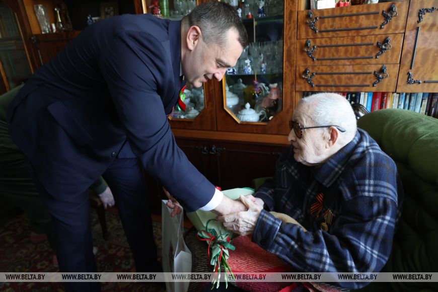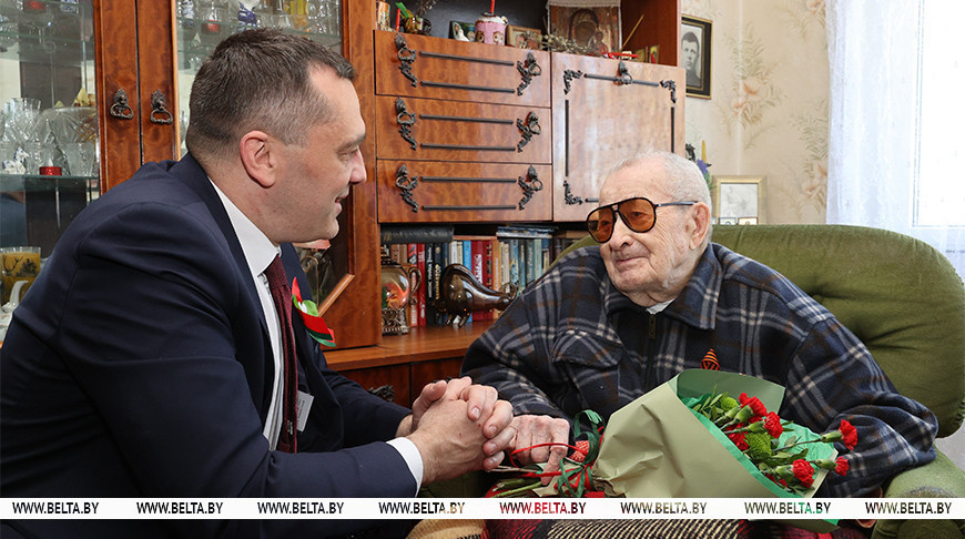 Председатель Витебского облисполкома Александр Субботин в День Победы 9 мая поздравил с праздником ветерана войны и участника Курской битвы из Витебска Георгия Грошева.