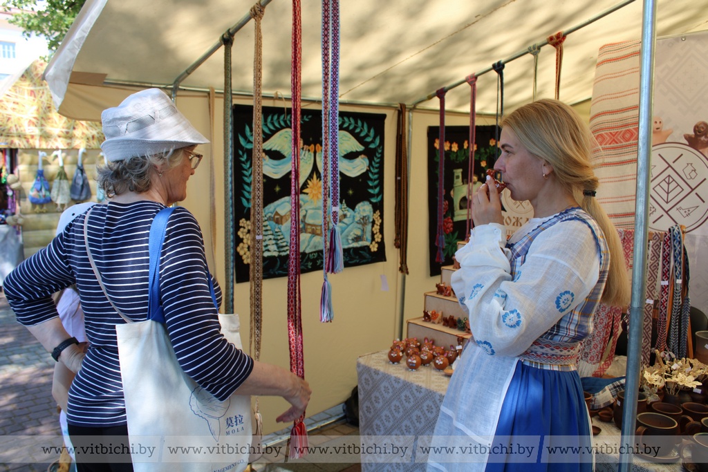Палатки с сувенирной продукцией от умельцев Витебской области расположены на улице Пушкина. Здесь предлагают широчайший выбор керамических и соломенных изделий, сумок-шопперов, кукол-оберегов представители домов ремесел Витебщины.