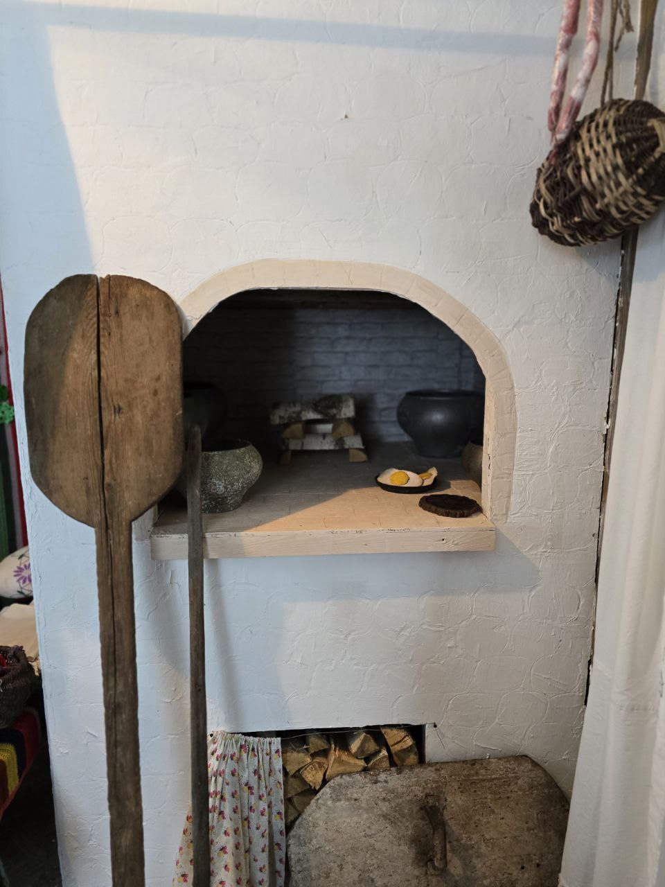 – Белорусская хатка. С печкой, деревянным столом, лавами. Оформили ее в национальных традициях, но с местным колоритом, как шутим. Ведь чем занималась хозяйка, пока хлеб выпекался? Правильно, рукоделием. Пряла, ткала, вышивала. Вот и мы украсили стены вышивкой, картинами из соломки, разместили на полках самобытных кукол, которые изготавливают наши умелицы. Здесь, в уютном и по-домашнему теплом уголке, планируем угощать посетителей свежеиспеченным хлебом.