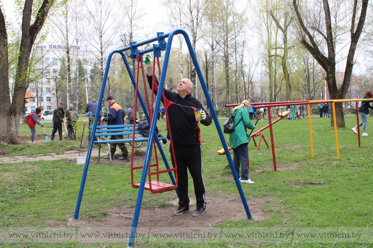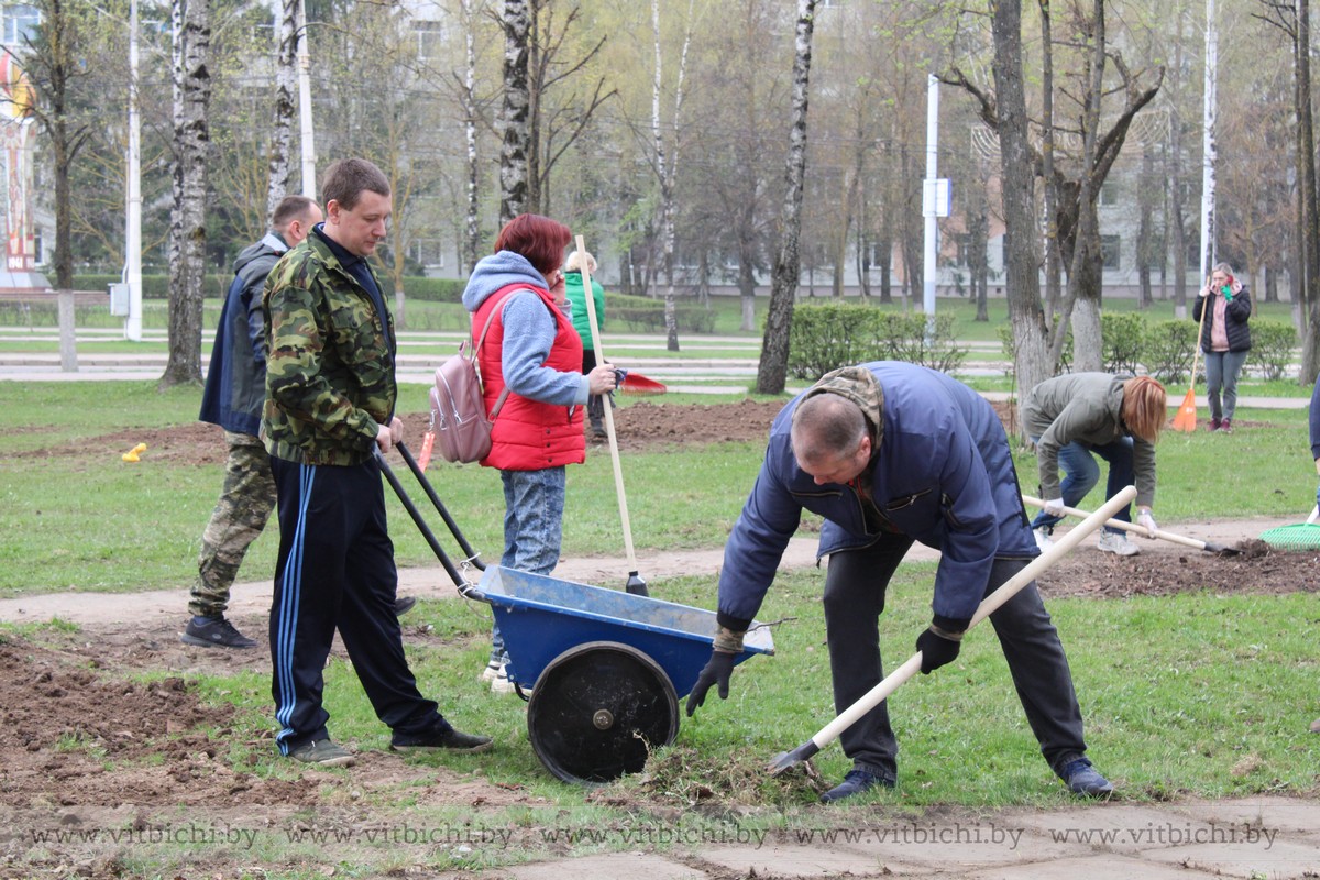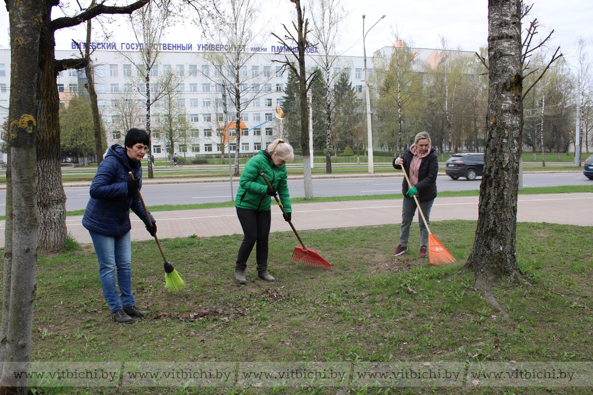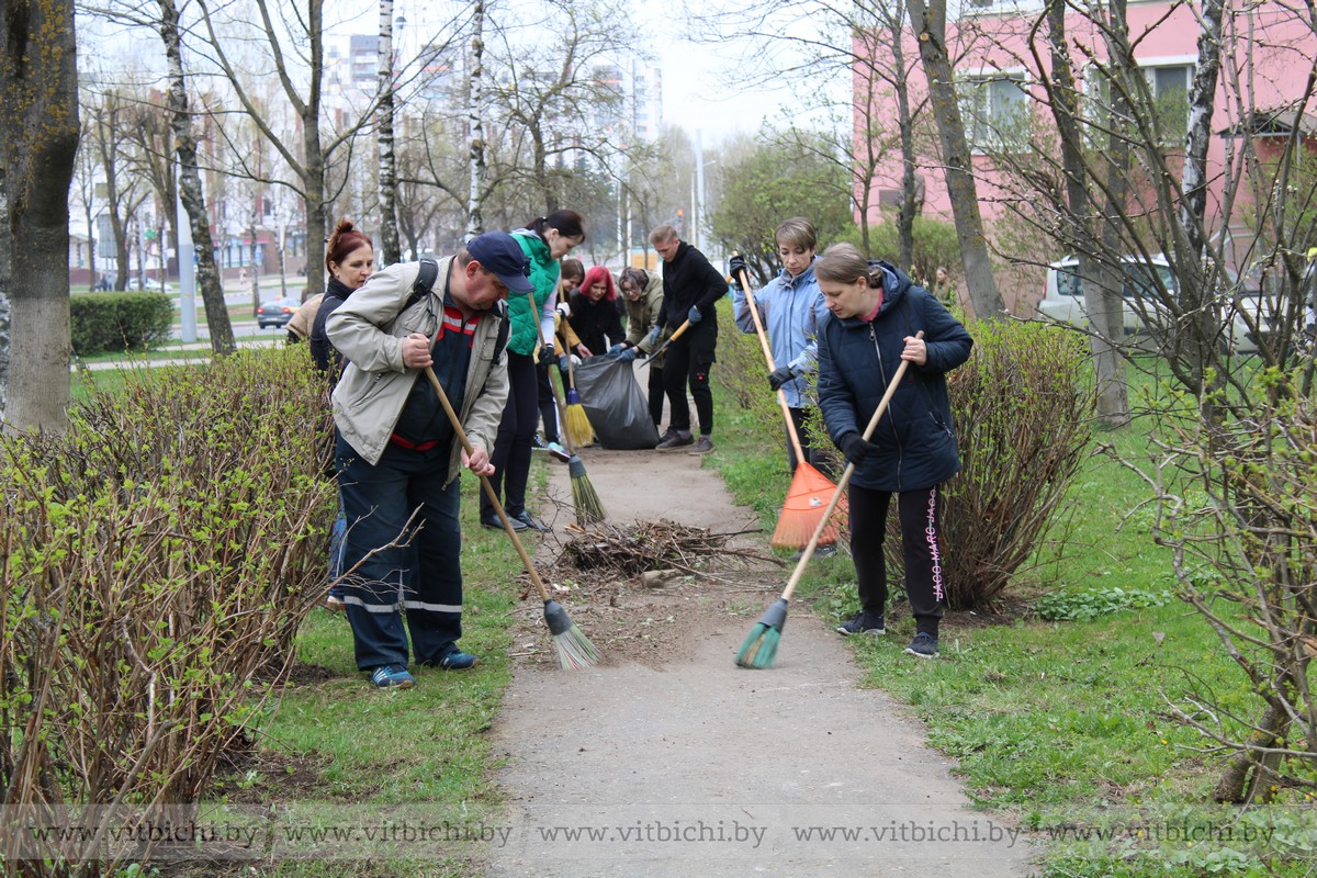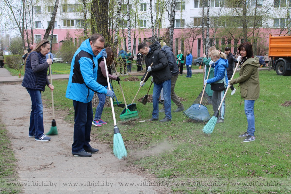 На Московском проспекте перед многоквартирными домами 64 и 66 есть большая зеленая зона, которая нуждается в уборке. Сотрудники администрации Октябрьского района города Витебска вместе с главой Юрием Панфиловым, а также работники Комитета государственного контроля Витебской области, областного филиала Национального центра правовой информации Республики Беларусь, студенты ВГТУ вооружившись необходимым инвентарем, принялись за уборку.