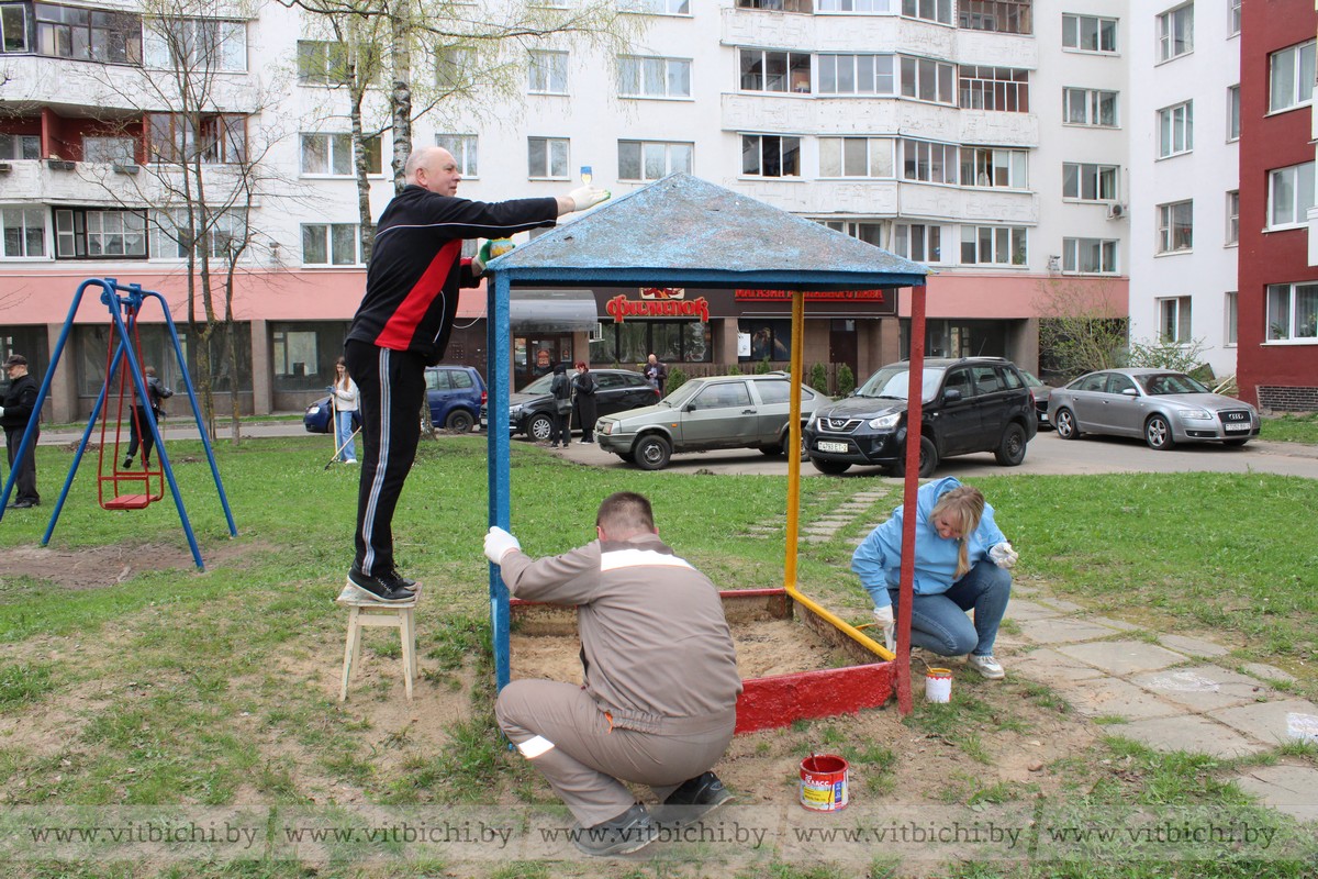 Педагоги учреждений дошкольного и среднего образования покрасили крытую песочницу, турники, качели, работники ЖЭУ-9 помогали убрать мусор и листву, загрузить все в прицеп спецмашины.