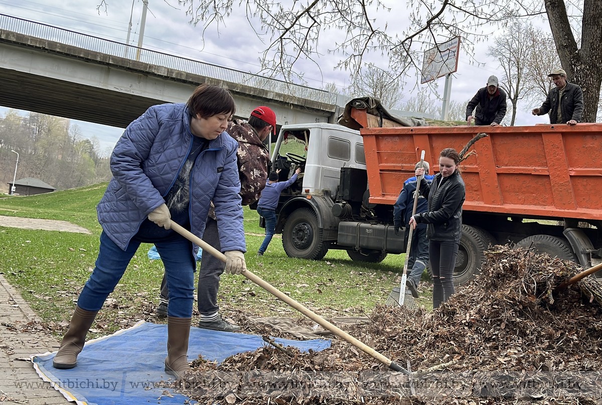 Около сотни работников Октябрьского района очистили территорию около реки Витьба от прошлогодней листвы.