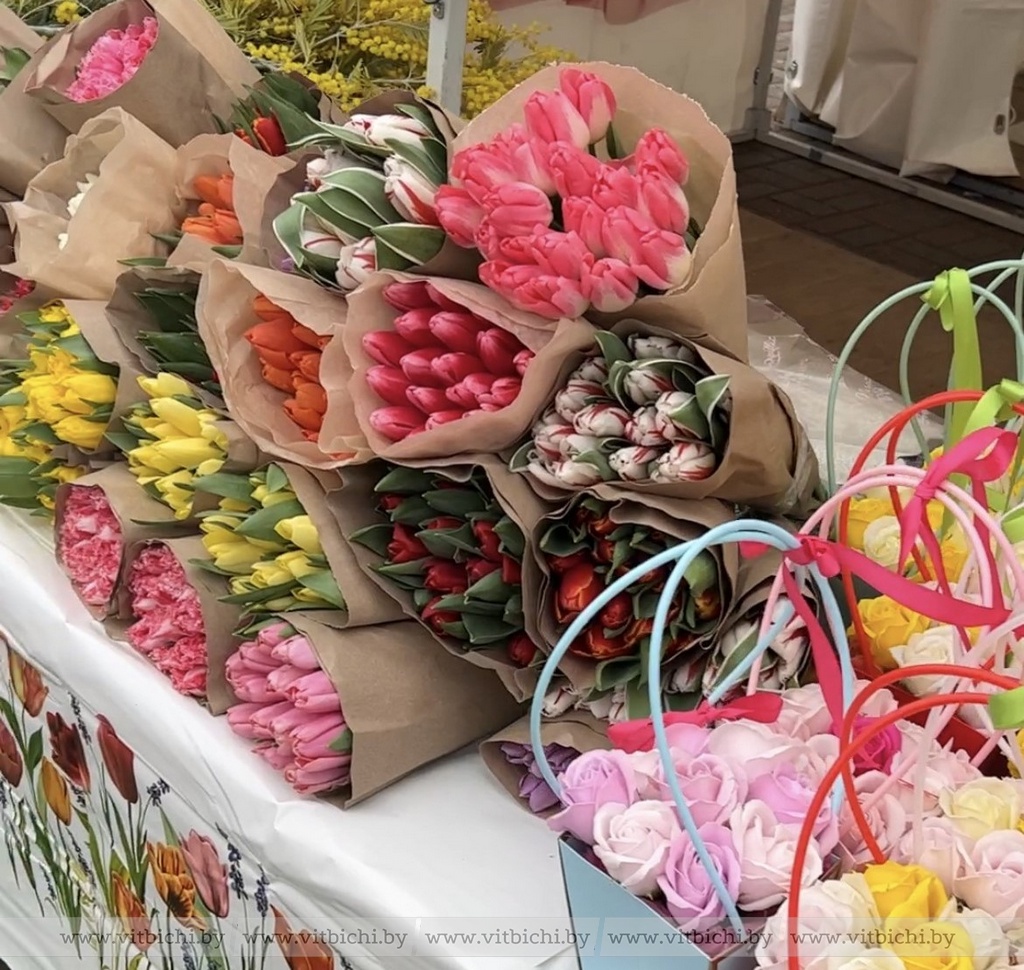 6 марта / «Витьбичи» / Вера Мурашкина /. Праздничная ярмарка «Для любимых»! уже радует покупателей разнообразием красок и ароматов. Продажу тюльпанов, мимозы и сувенирных цветочных композиций их производители начали сегодня, 6 марта, с 10 часов сразу на многих площадках в разных уголках Витебска: