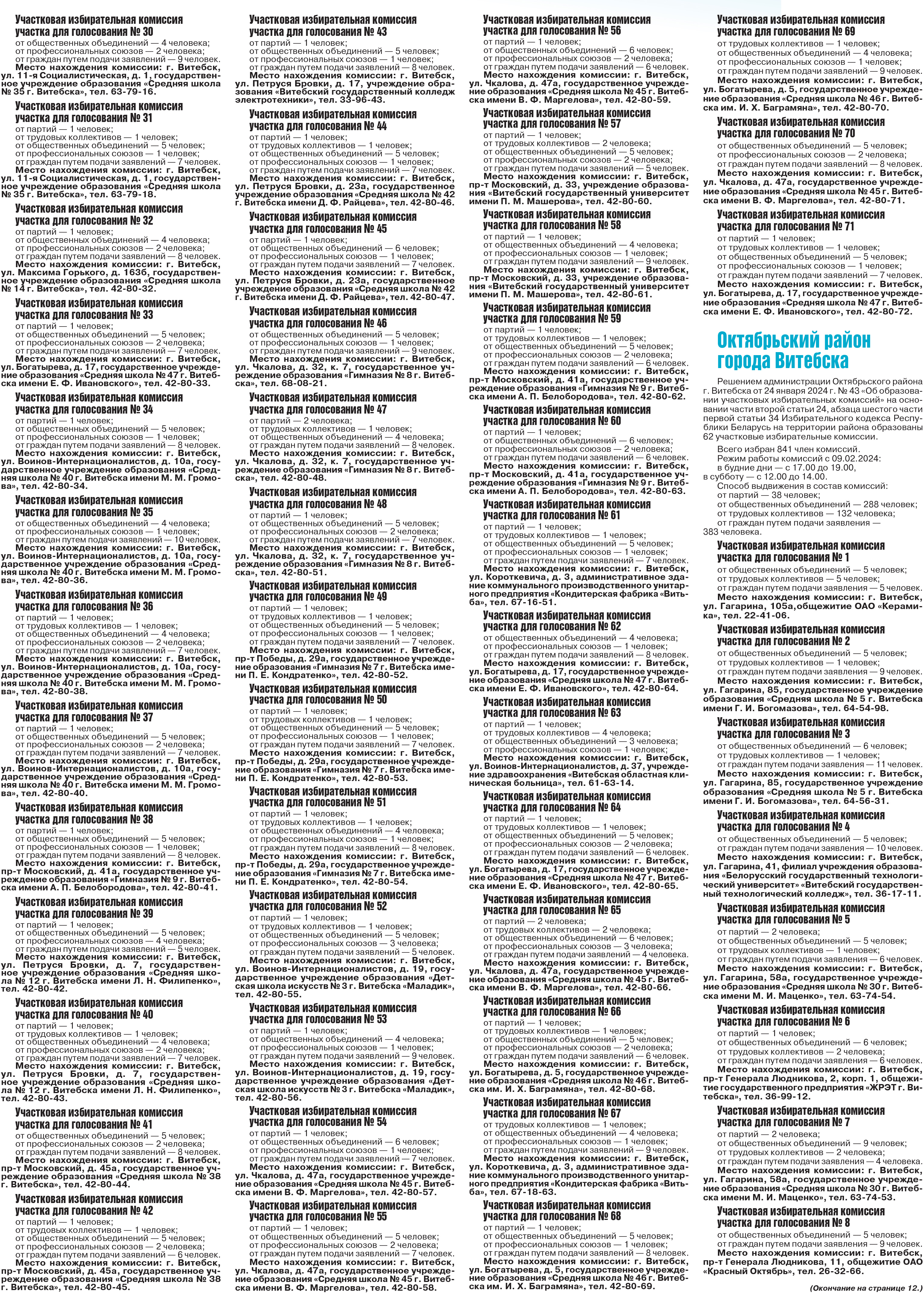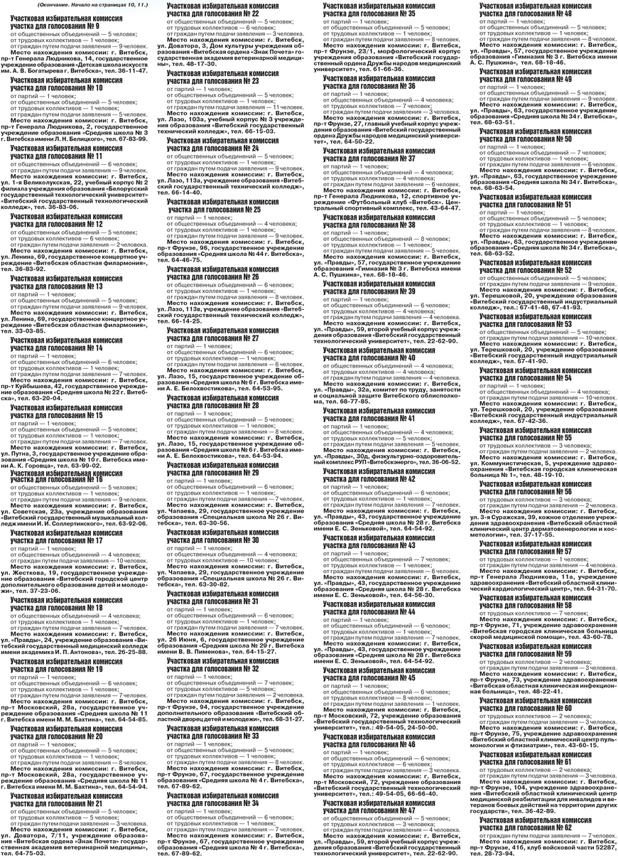 Участковые избирательные комиссии в Витебске