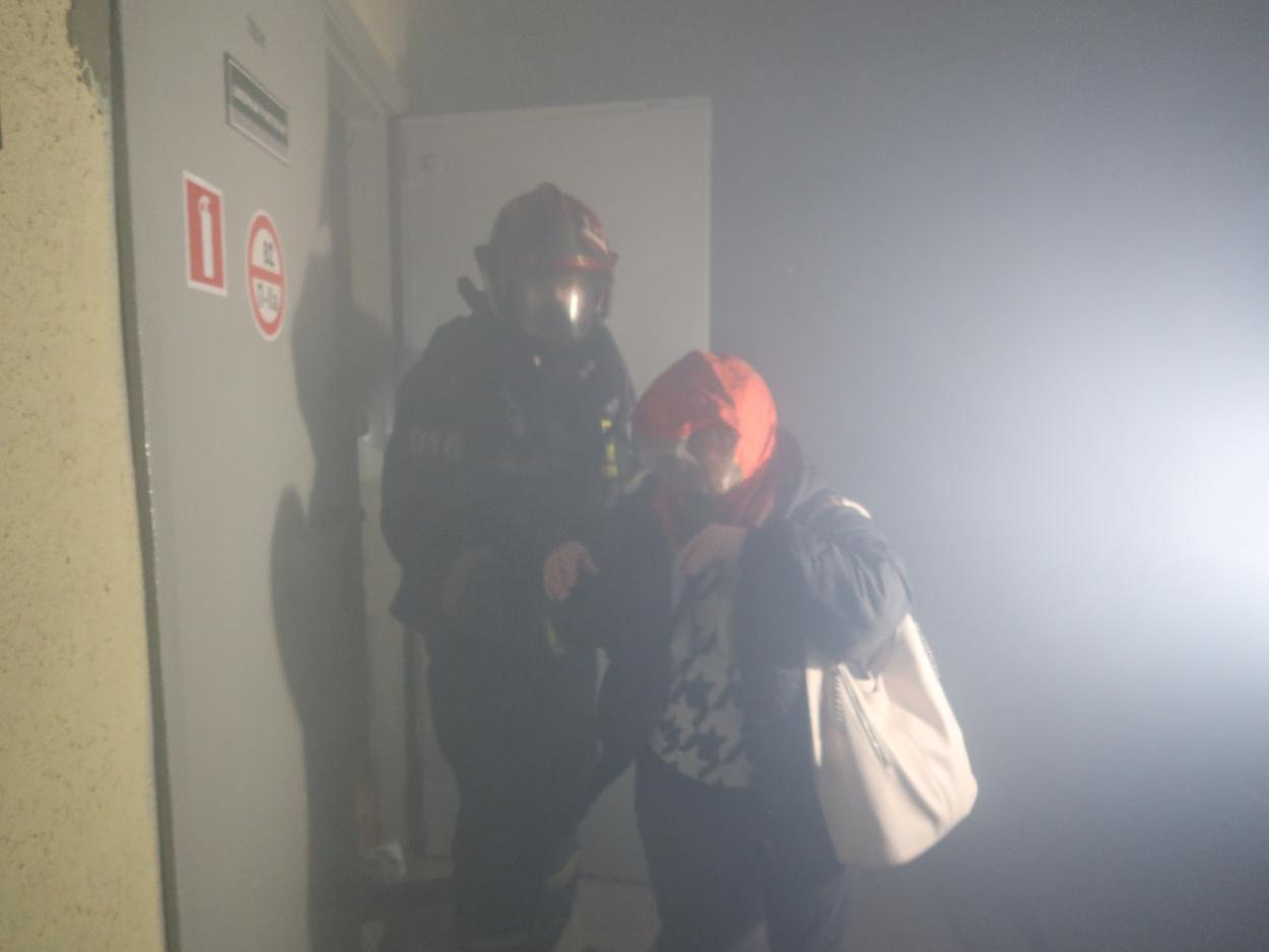 Для спасения условно пострадавших с верхних этажей здания применялась высотная техника МЧС.