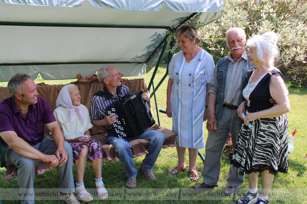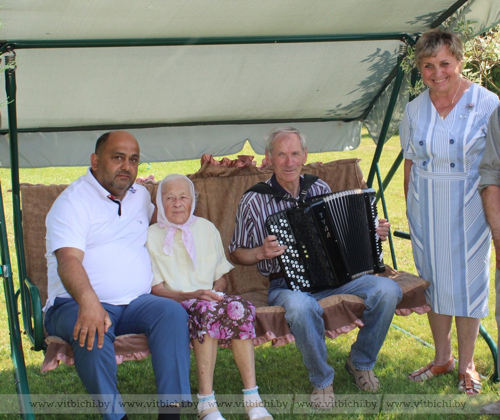 В гости к ней и ее родным, с которыми она проживает последние 10 лет, приехали исполняющий обязанности Новкинского сельсовета Денис Жаворонков, председатель Витебской районной организации ветеранов Нина Козлова, директор частного предприятия «МЭДО» Эльман Мирзоев, а также дуэт «Браво» в составе Розы Соловьёвой и Леонида Балюцкого.