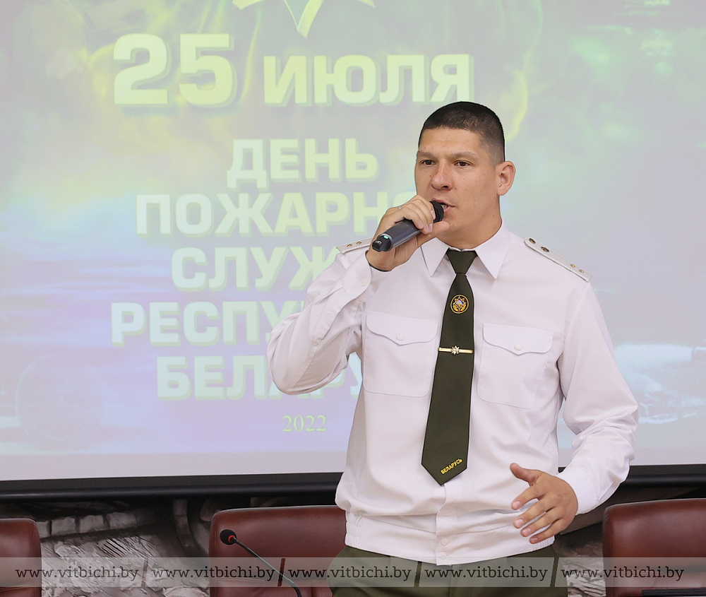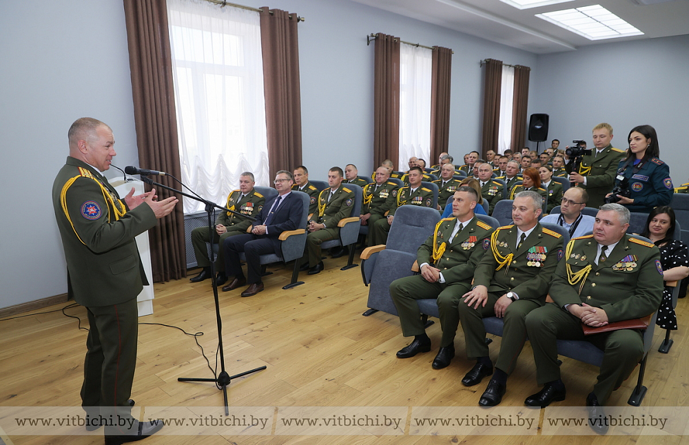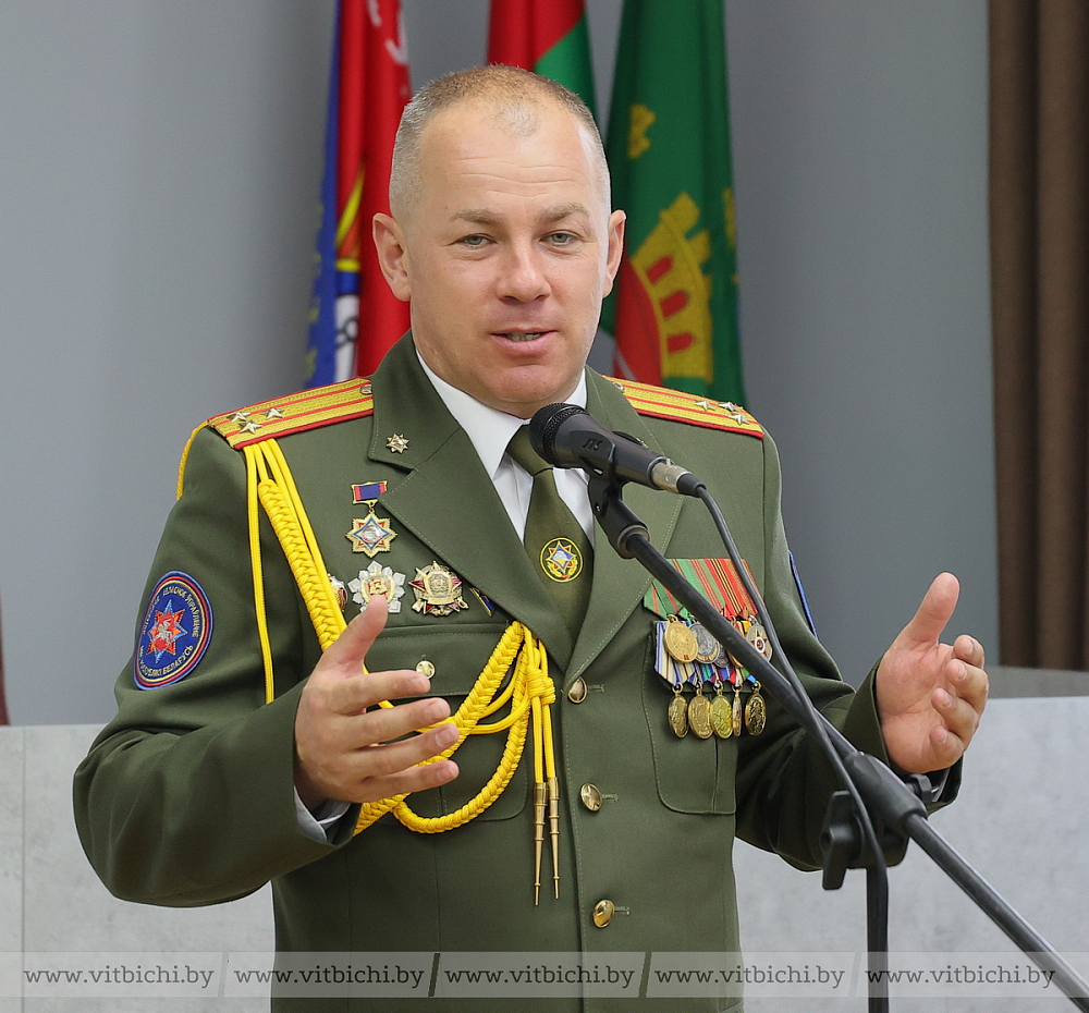 С приветственным словом к присутствующим обратился начальник Витебского областного управления Сергей Мелешкин. Он поставил задачу – провести в следующем году 170-летие ведомства в Летнем амфитеатре вместе со своими друзьями и партнерами. А за год провести 170 не плановых мероприятий, открыть арт-объект в районе Ратуши.