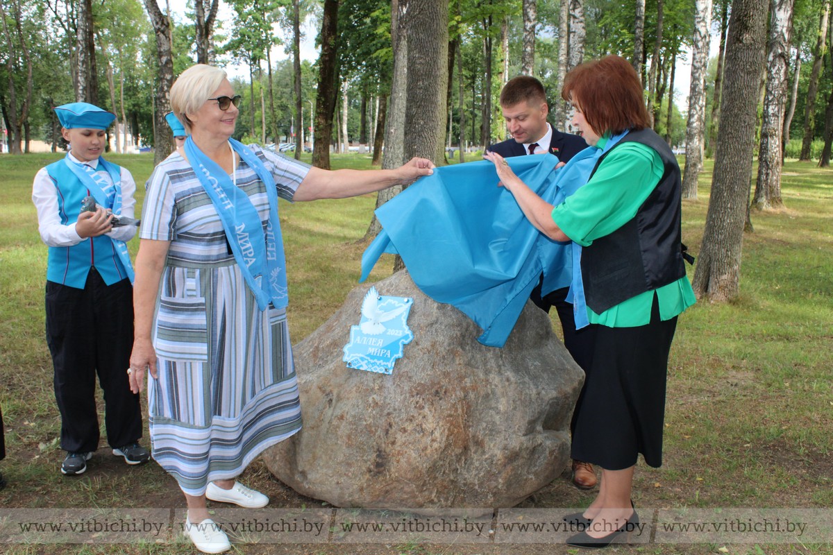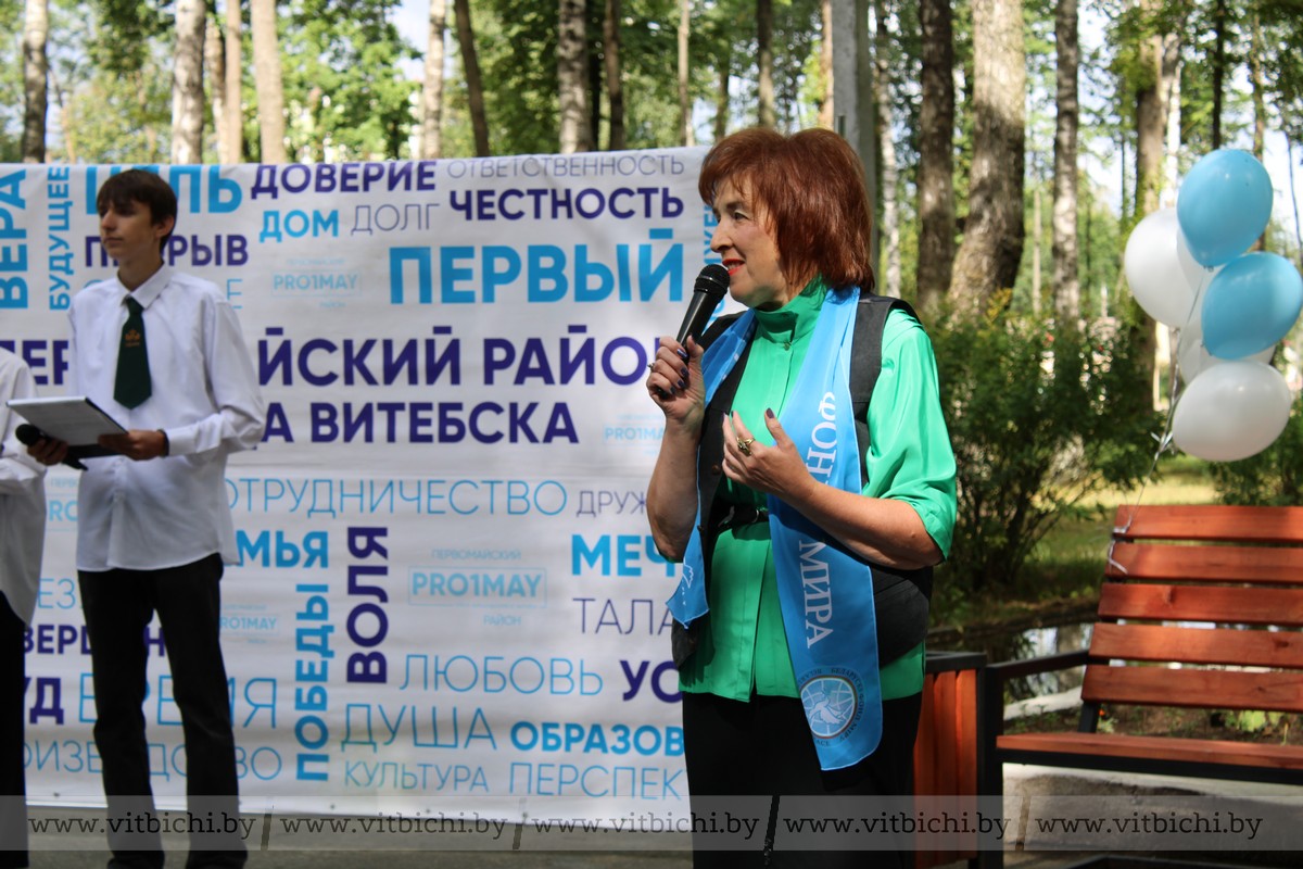 – Открытие аллеи Мира – новая ступень в развитии такого хорошего, зеленого, живописного уголка в нашем любимом городе. Благодаря совместным силам мы смогли благоустроить замечательный парк, и будем продолжать добрые дела для процветания Первомайского района и всего областного центра. Здесь будет приятно отдыхать витебчанам и гостям города, – подчеркнула председатель правления Витебского областного отделения общественного отделения «Белорусский фонд мира» Татьяна Туманова.