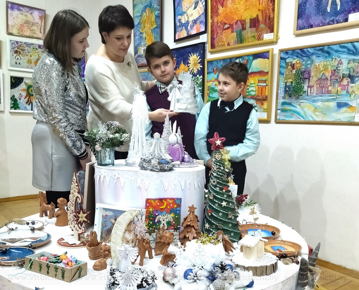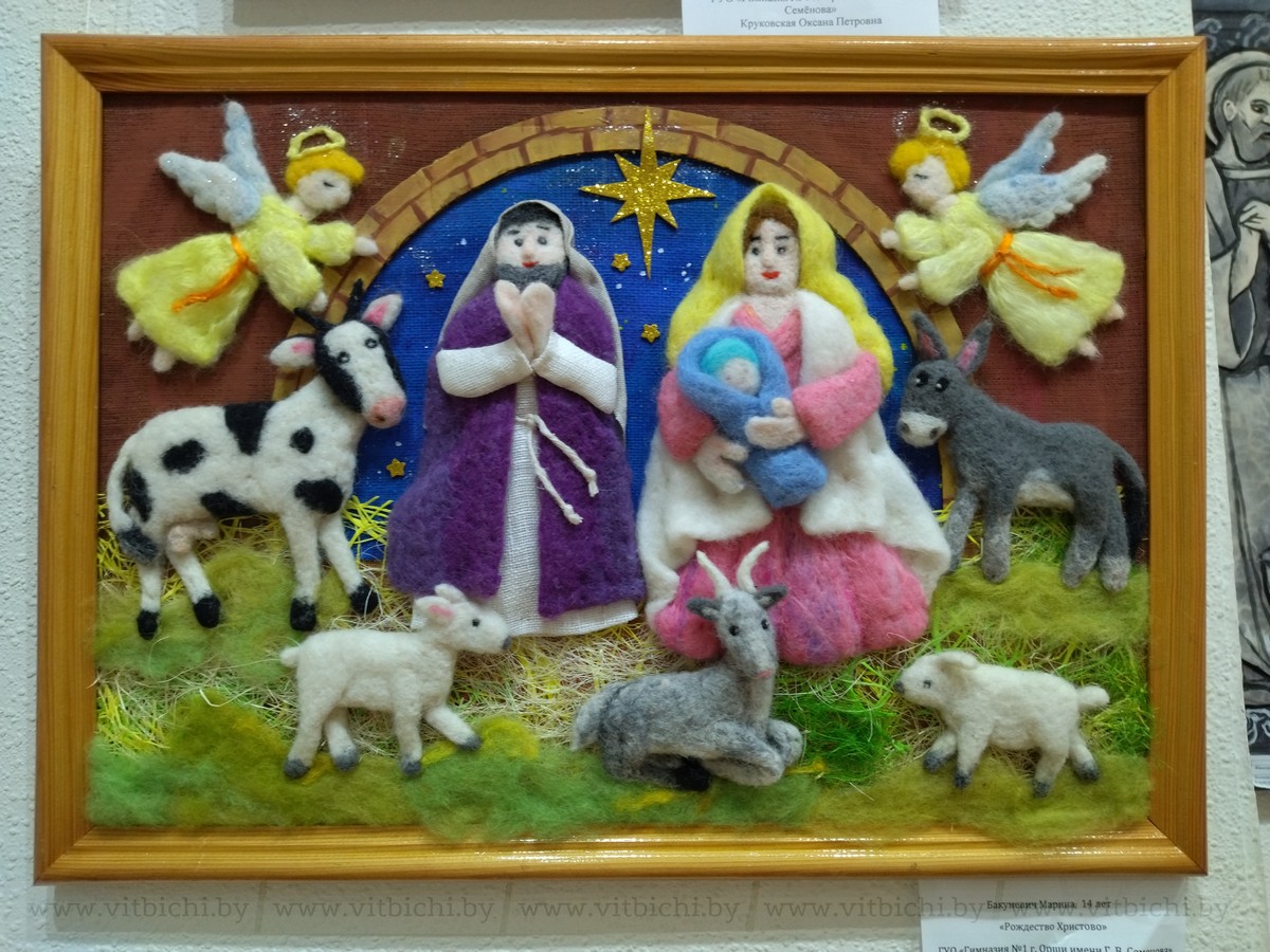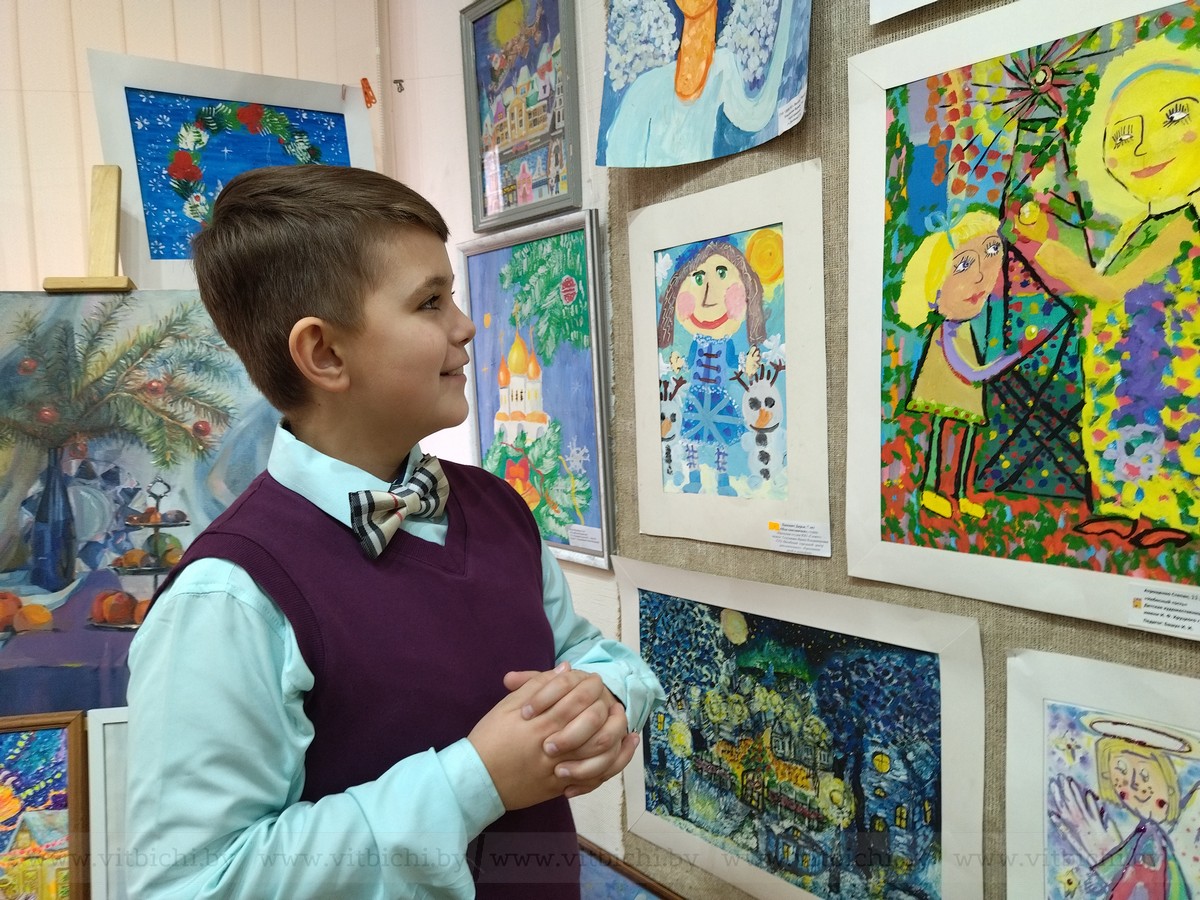 Уже 13 лет конкурсная выставка экспонируется в ДШИ № 3 «Маладик». Здесь сейчас размещены почти все конкурсные работы, сколько вместили залы. Это живопись, графика, предметы декоративно-прикладного творчества. Участники выставки — ребята от 8 до 17 лет. Каждый из них создал свой сюжет, свои образы Рождества, дал возможность зрителю почувствовать настроение праздника и его особенность, рассказал о семейных традициях…