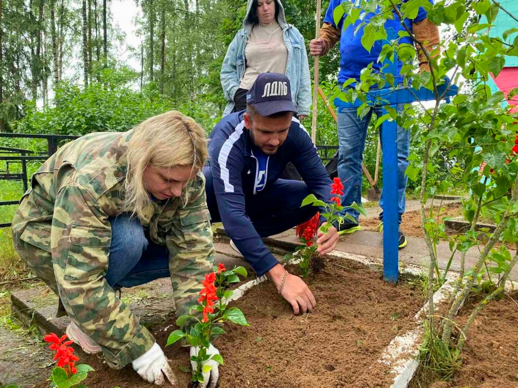 Участники благородной акции побелили бордюры, высадили цветы, навели чистоту на мемориале и возложили венки.