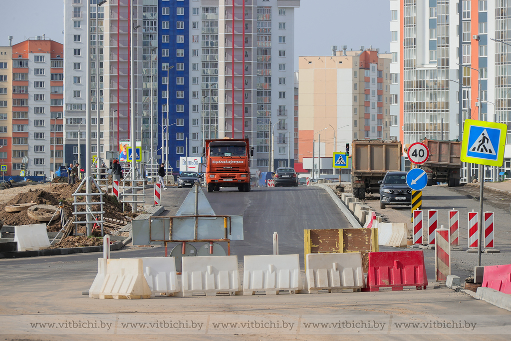 По словам руководителя проекта УКСа города Витебска Вадима Сазановича, строительные работы по пусковому комплексу, в который входит строительство и асфальтирование проезжей части, тротуаров со стороны «Евроопта», освещение улицы, установка остановочных пунктов, планируется завершить во втором квартале 2024 года. Тротуар вдоль жилых домов — в третьем квартале.