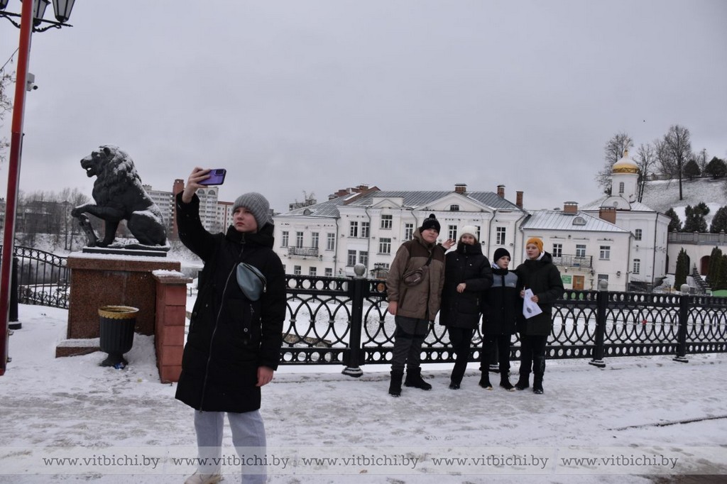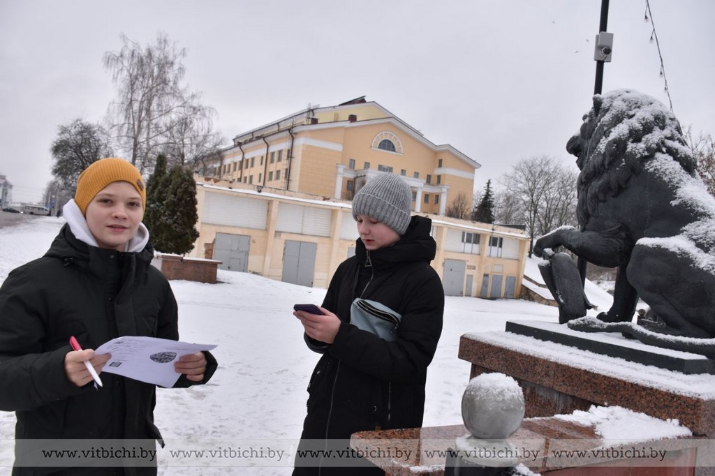 Вначале им надо было узнать как называется площадь, где находится храм с оригинальной каменной кладкой. Затем с помощью подсказок нужно было вычислить длину Пушкинского моста – одного из символов Витебска для влюбленных. После этого искали ключ от города Витебска – там, где Витьба впадает в Западную Двину, посчитали ступеньки, ведущие к Свято-Успенскому храму (ребята написали в ответе что 124).
