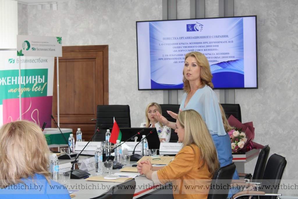 О создании крыла женщин-предпринимательниц проголосовали все присутствующие члены Союза женщин. Председателем отделения избрана витебчанка Елена Прохорова. Ранее она возглавляла первичную ячейку предпринимателей города Витебска.