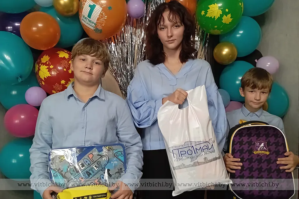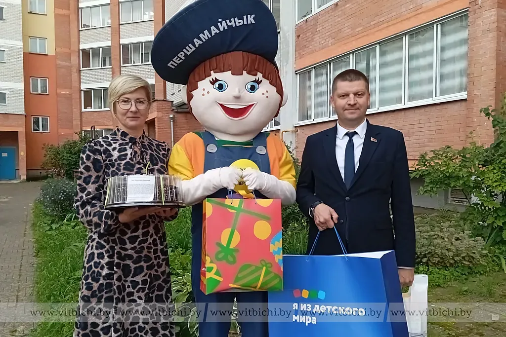 - В рамках проекта "Партия - детям!" уже не первый год мы поздравляем семьи с новым учебным годом, - рассказала Ирина Анатольевна. - К поздравлению всегда присоединяется глава администрации района, который инициирует совместную акцию. В этот раз мы подготовили для детей всё, что необходимо к школе, начиная с канцелярских принадлежностей и заканчивая рюкзаком, а также угощение. Для настроения пригласили на мероприятие "Першамайчыка", ростовую куклу как символ района.