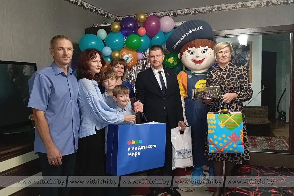 В семье воспитываются четверо детей, двое из которых пойдут в гимназию N5 имени И. И. Людникова. Старший сын - второкурсник БНТУ, дочь поступила в Витебский индустриальный колледж. Поздравить ребят и, естественно, родителей с наступающим 1 сентября пришли глава администрации Первомайского района Евгений Семёнычев и председатель районного отделения Белорусской партии "Белая Русь" Ирина Лошакова.