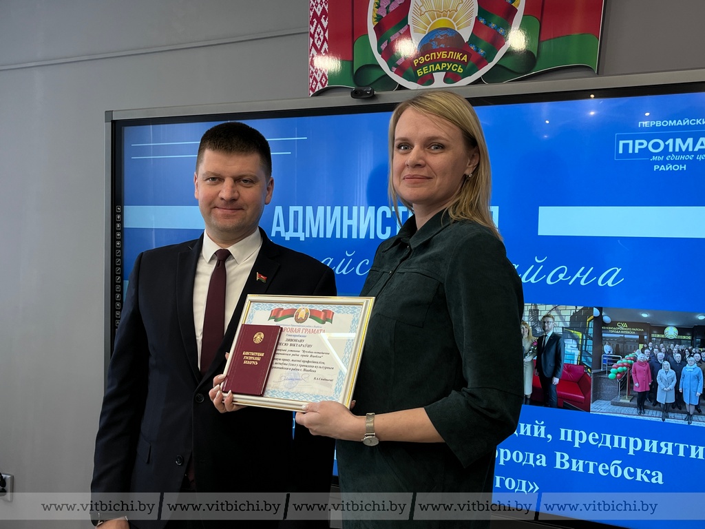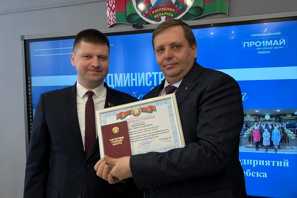 Почетных грамот администрации Первомайского района за многолетний добросовестный труд, высокий уровень организации идеологической работы на предприятии удостоены директор Витебского филиала РУП «Белтелеком» Дмитрий Казак и директор ОАО «Витебский завод тракторных запчастей» Олег Шимченко.