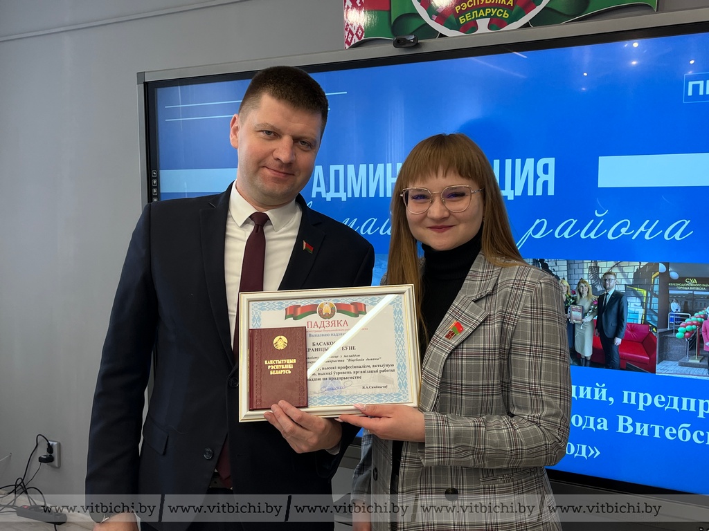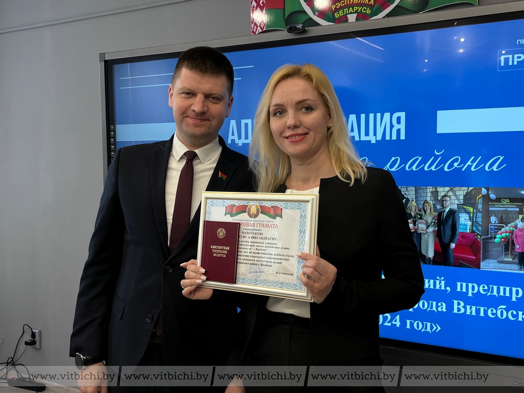 За добросовестный труд, высокий профессионализм, творческую инициативу, активное участие в общественной и культурной жизни района награждены методист учебно-методического кабинета Первомайского района Алеся Леонова, а за добросовестный труд, высокий профессионализм, личный вклад в организацию и проведение спортивных мероприятий, активное участие в общественно-политической жизни – директор Специализированной детско-юношеской школы олимпийского резерва «Комсомолец» Анастасия Чеховская.