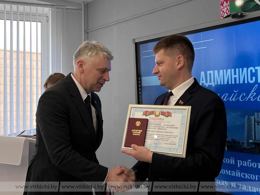 Также Евгений Семёнычев вручил благодарности за высокий уровень организации идеологической работы в трудовом коллективе, за личный вклад в реализацию государственной молодежной политики и активное участие в общественно-политической и культурной жизни Первомайского района.