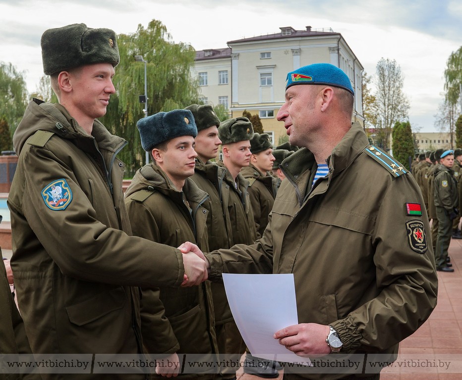 22 октября/ "Витьбичи" / Екатерина Пучкова /. Около 300 военнослужащих, отслуживших установленный срок срочной военной службы, покинули стройные ряды прославленного соединения. Лучшие из них, согласно приказу командира воинской части гвардии полковника Владимира Сафонова, награждены грамотами, им вручены подарки, в том числе «мерчи Первого». Возле Вечного огня состоялась торжественная церемония прощания с боевым знаменем.