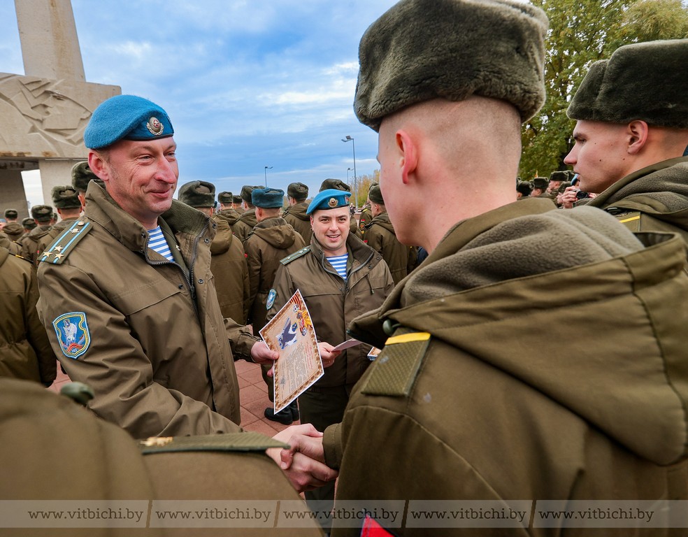 – На этом месте у Вечного огня кто-то год назад, а кто-то всего полгода назад принимал присягу. Служба прошла быстро, окрепшими подготовленными, настоящими гвардейцами-десантниками мы выпускаем вас в самостоятельную жизнь, – обратился к военнослужащим Владимир Сафонов. – Вас многому научили опытные командиры, работа в сплоченном коллективе. Всегда помните о службе в нашем прославленном соединении, десантном братстве и о героях Великой Отечественной войны, которые пали, защищая Родину. Будьте образцом мужественности, честности, ответственности, чтобы 103-я бригада и ваши семьи гордились вами. Вы – поколение патриотов, способных выполнить любые возложенные задачи!