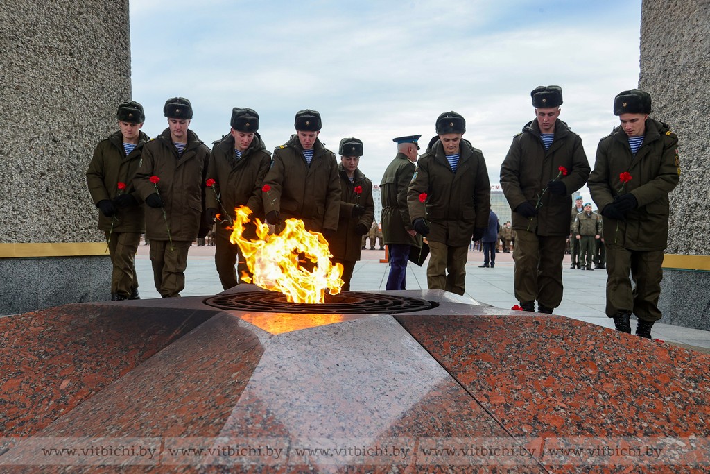 Как дань памяти героическим страницам в истории Витебска увольняемые в запас возложили цветы к Вечному огню.