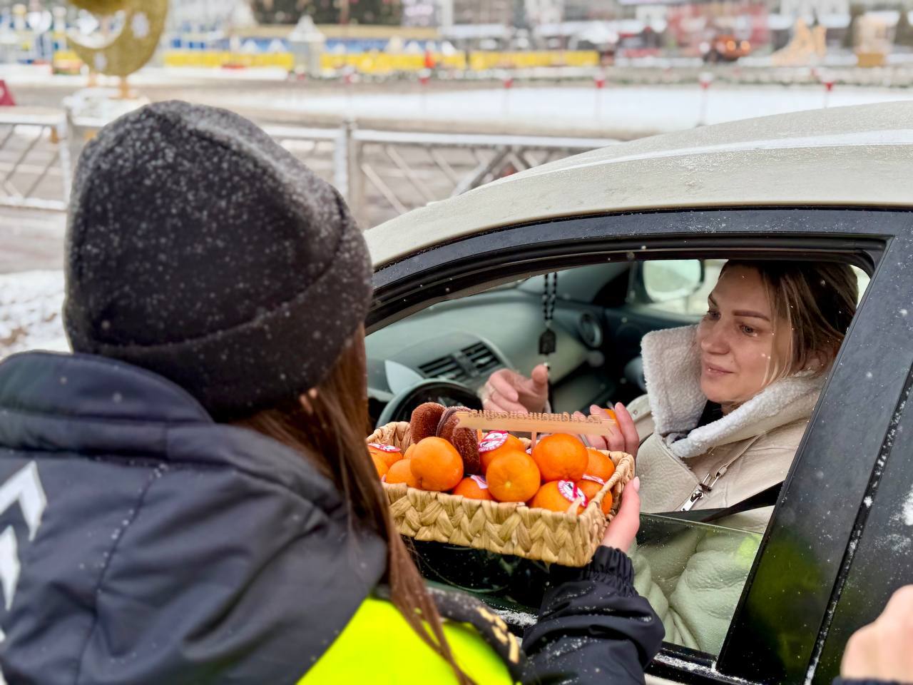 Всем участникам акции правоохранители вручили мандарины, символизирующие здоровый образ жизни. На каждом фрукте была размещена специальная этикетка с призывом, отражающим суть мероприятия.