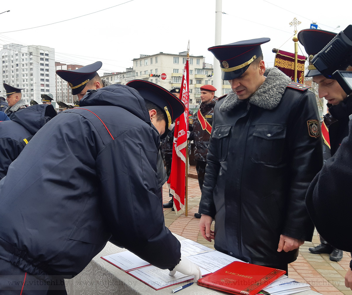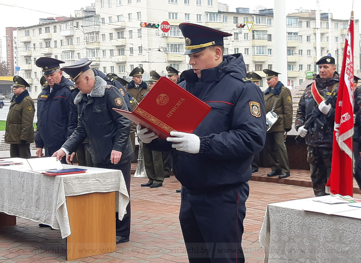 В Беларуси 10 ноября отмечается День чествования ветеранов органов внутренних дел и внутренних войск МВД. Накануне этой даты у памятного знака сотрудникам органов внутренних дел и внутренних войск, погибшим при исполнении служебного и воинского долга, в присутствии руководства УВД облисполкома и ветеранов молодые милиционеры принесли присягу на верность Родине.