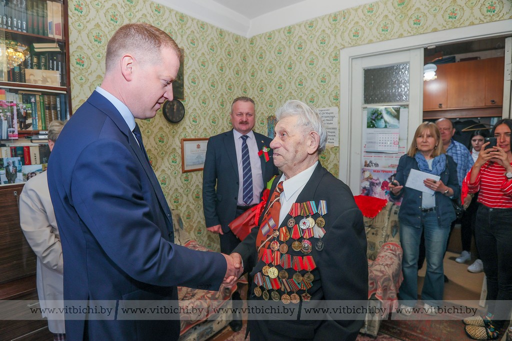 Глава администрации Первомайского района Евгений Семёнычев навестил ветерана войны Петра Масленникова. Этот мужественный человек после освобождения родного Витебска участвовал в его разминировании, был ранен при подрыве взрывоопасного боеприпаса. Свои слова уважения человеку, который не раз глядел в глаза смерти, высказали учащиеся СШ № 40 имени М. М. Громова. Ветерану, кроме материальной помощи, также вручили живые цветы и сувениры.