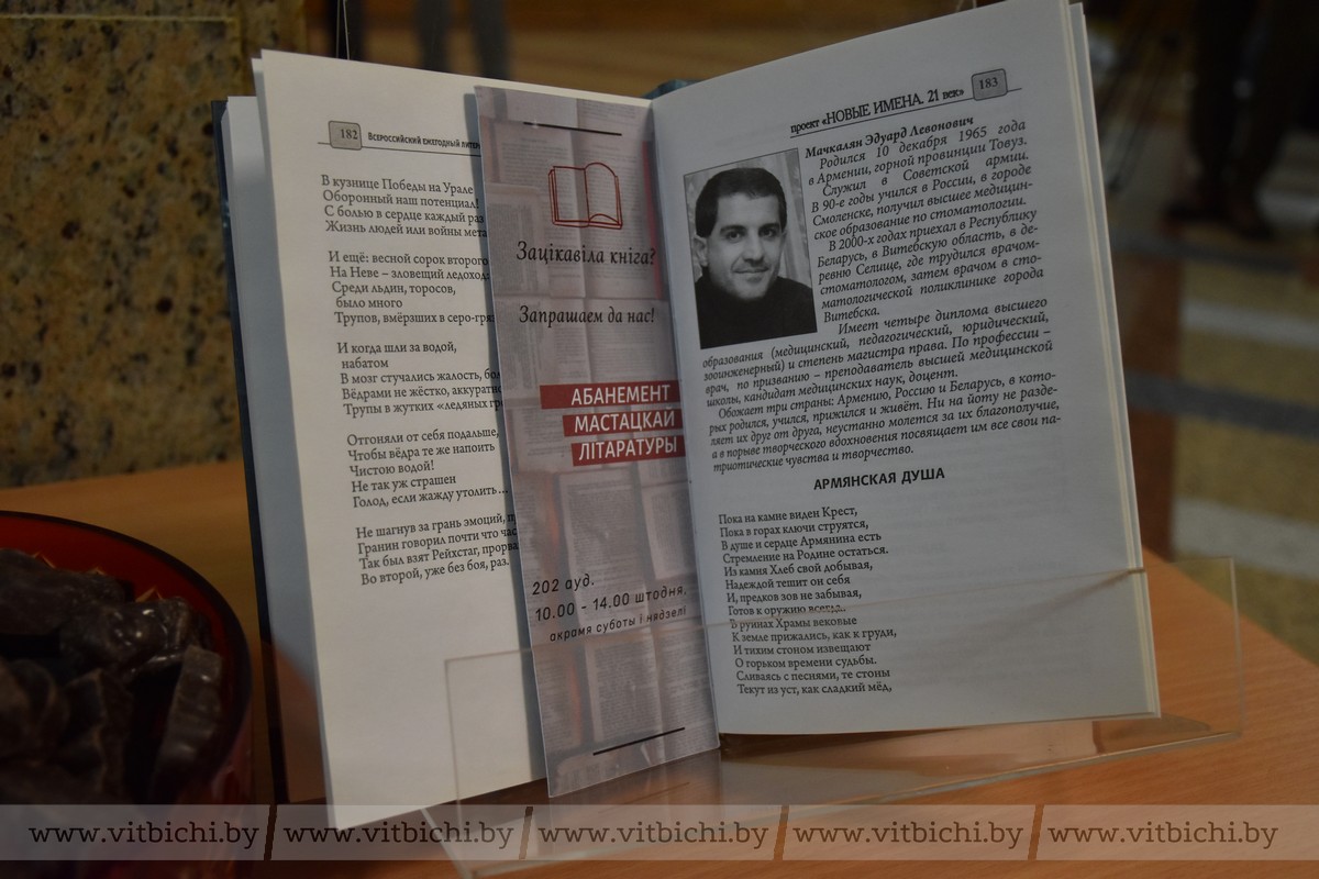 В медицинской библиотеке Витебского государственного медицинского университета прошло открытие выставки «Поэтические пейзажи. Дыхание весны» заведующего кафедрой общей и ортопедической стоматологии с курсом ФПК и ПК Эдуарда Мачкаляна.