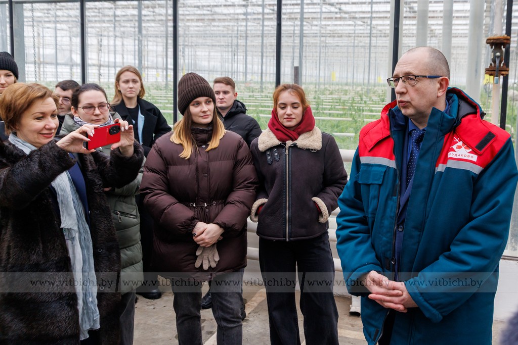 Молодые люди и девушки узнали, что тепличный комбинат является ведущим в области и одним из крупнейших в республике. Здесь работает собственная ТЭЦ, которая дает возможность выращивать овощи на светокультуре и получать овощную продукцию с ноября по март. Продукцию предприятия покупают в объектах торговли Витебска и районов. Заместитель директора предприятия Александр Матюшков рассказал молодым коллегам, что «Рудаково» помимо выращивания овощей известно как крупнейший производитель молока, мяса, зерновых культур и кормов. Всего на предприятии работает почти 900 человек, летом коллектив увеличивается до 1300 работников, задействованных в сельхозпроизводстве. Все, чем гордится предприятие «Рудаково», создано золотыми руками работников – людей преданных и искренне любящих свое дело.